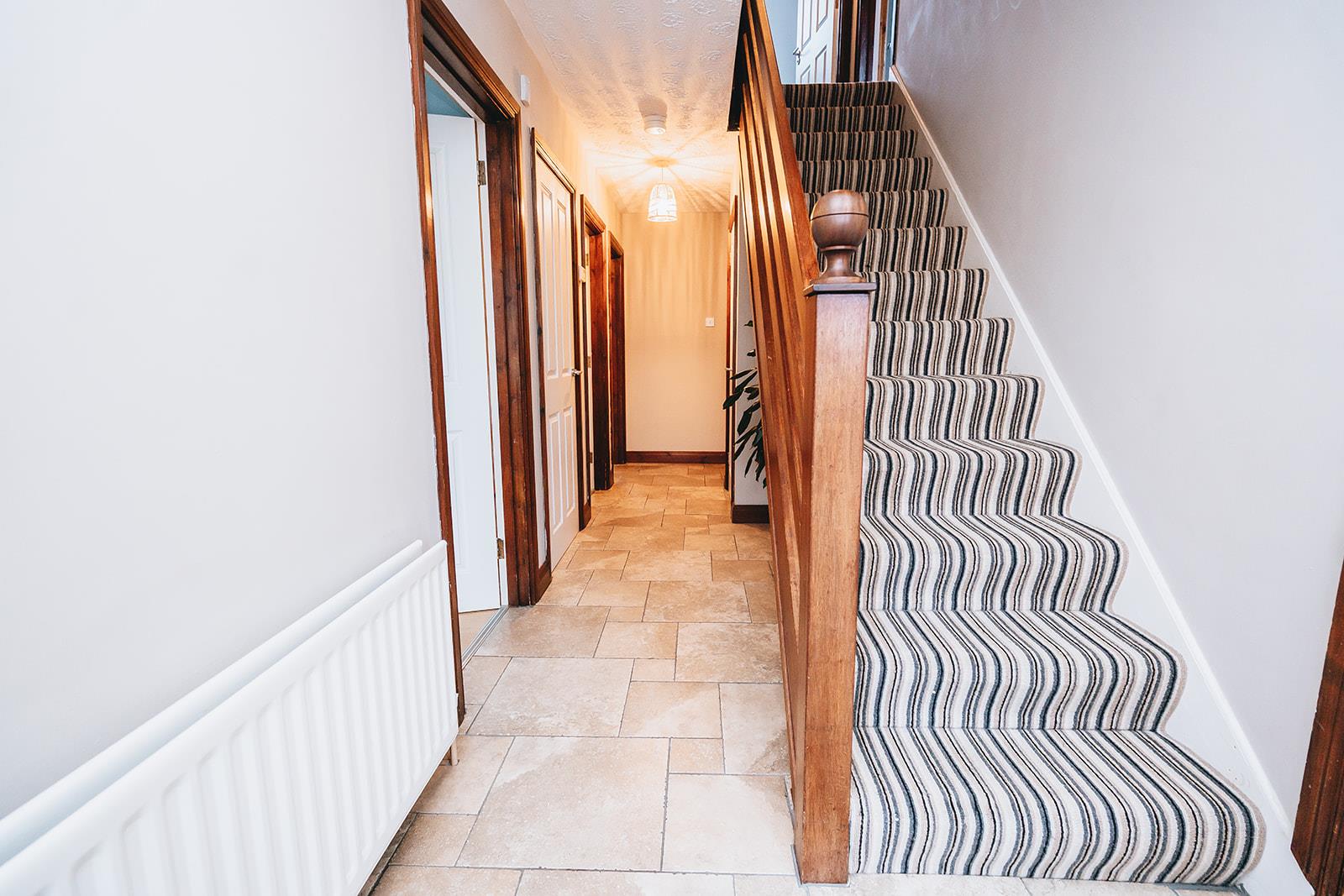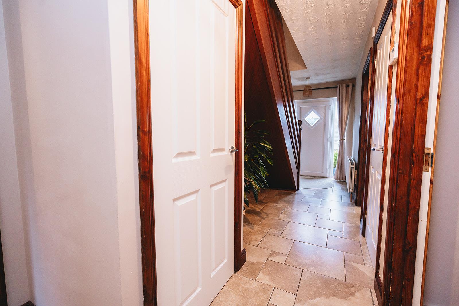 A uPVC double glazed entrance door with side panels leads to the reception hall which has tiled floor, separate cloakspace and separate hotpress.