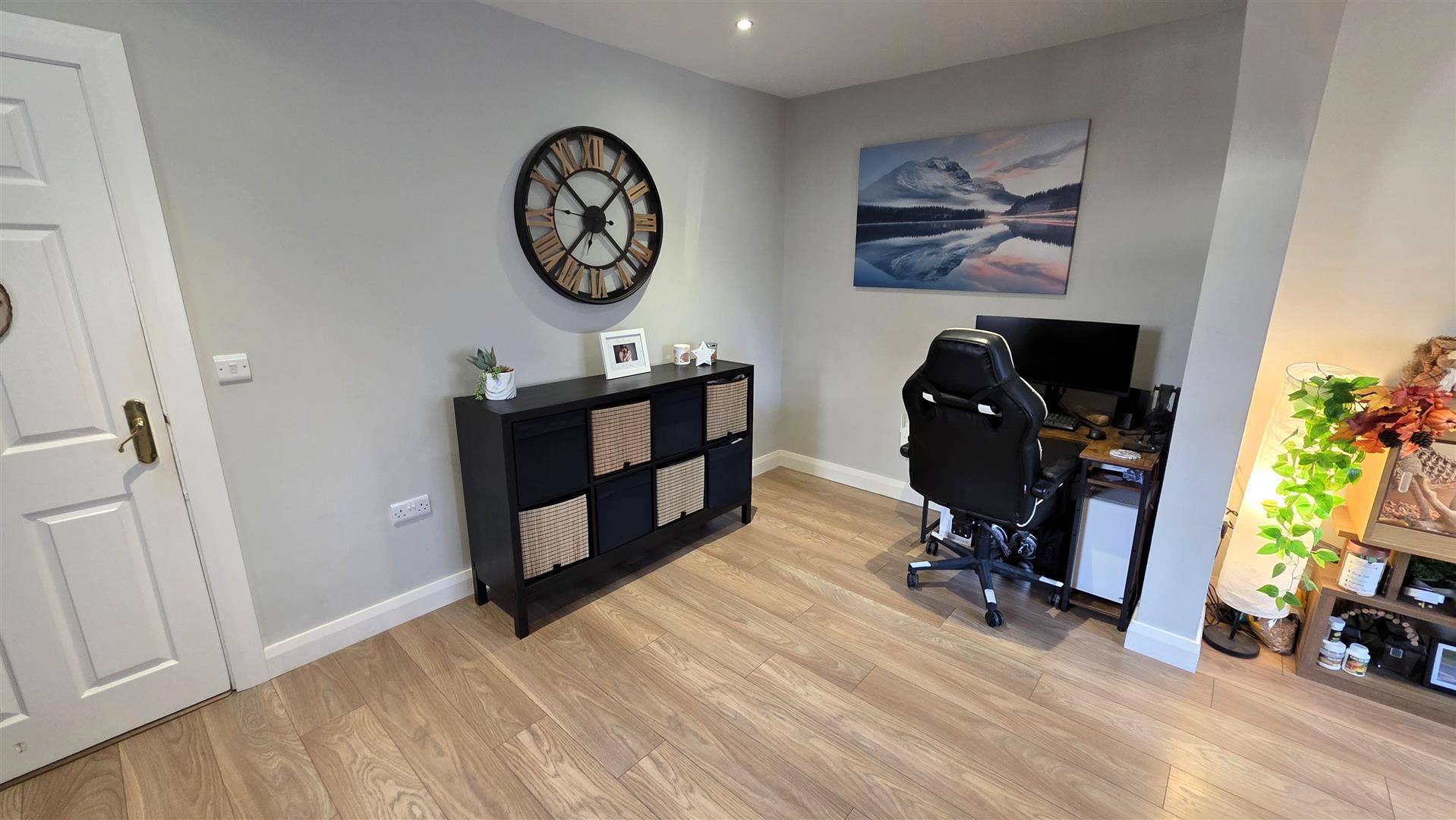 PVC double glazed door to entrance with wood laminate flooring.