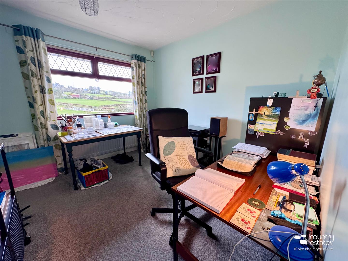 Presently used as study. Built-in fitted wardrobe with overhead storage. Views over gardens extending towards surrounding countryside.