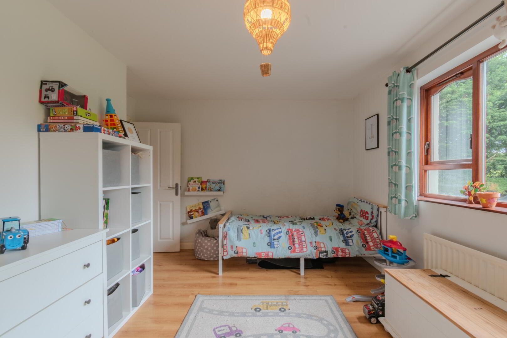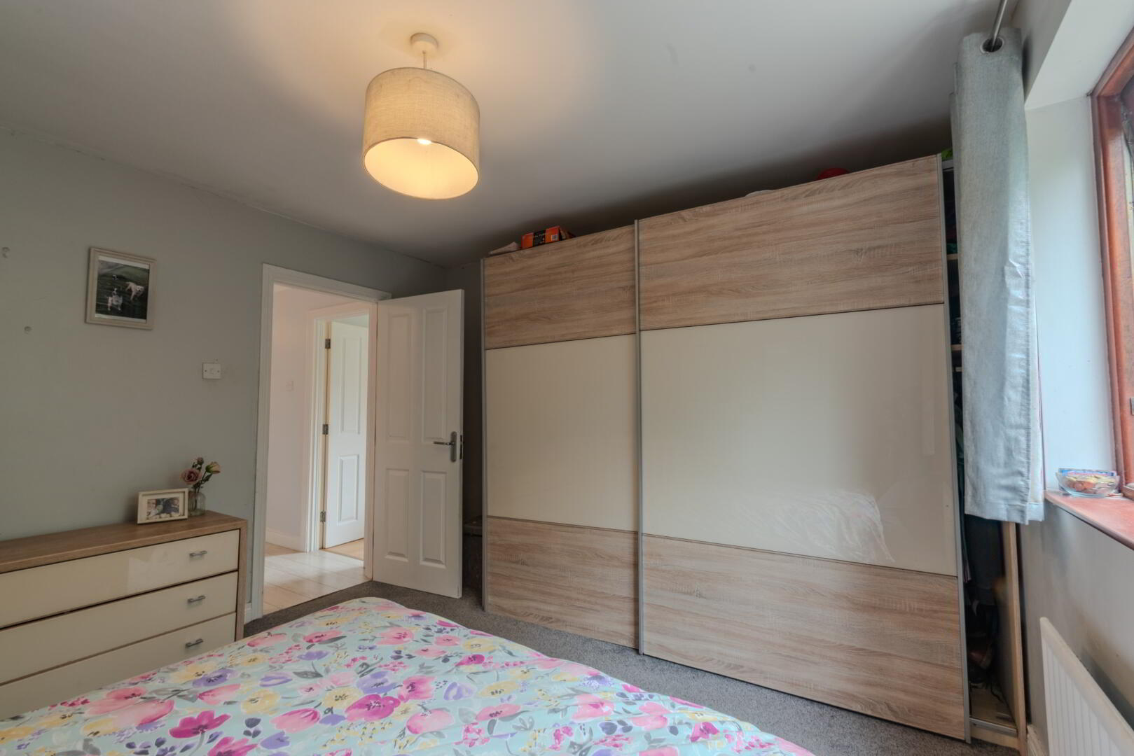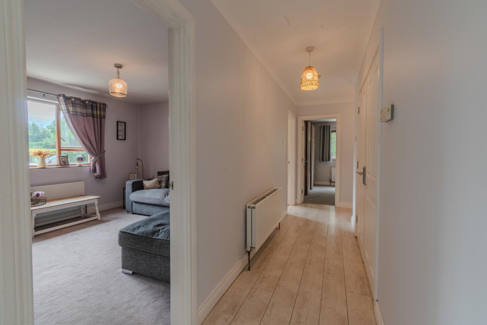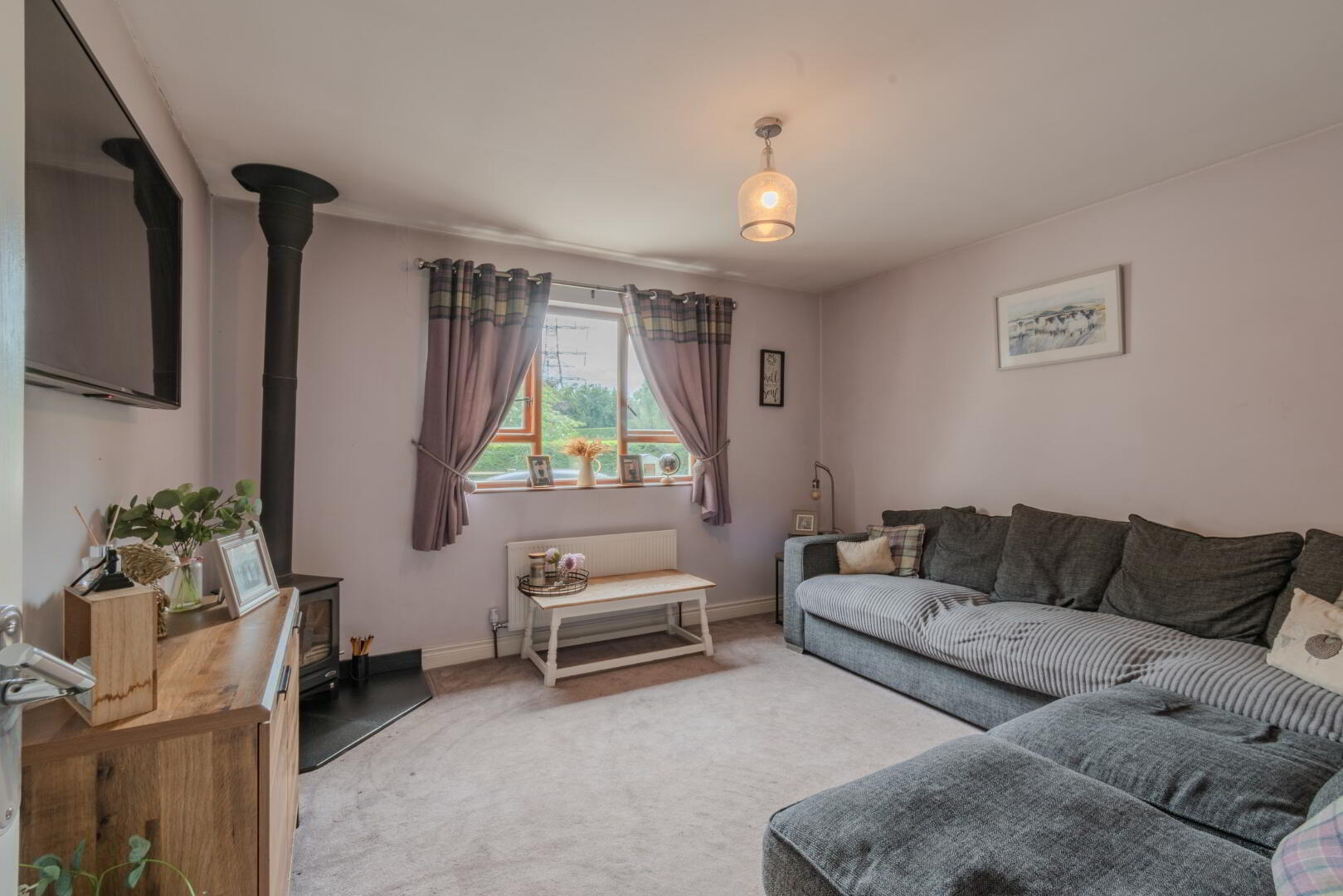 Internally, the ground floor accommodation has been thoughtfully laid out, beginning with a welcoming hallway featuring a vaulted ceiling, leading to an elegant sitting room with stone surround open fire. The heart of the home is a spacious shaker-style kitchen with central island, open to a bright dining area and supported by a large utility. A further lounge with Henley stove, family bathroom, and three well-proportioned bedrooms (one ideally suited as an office) complete the ground floor.
