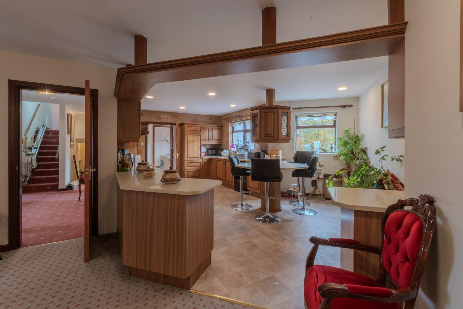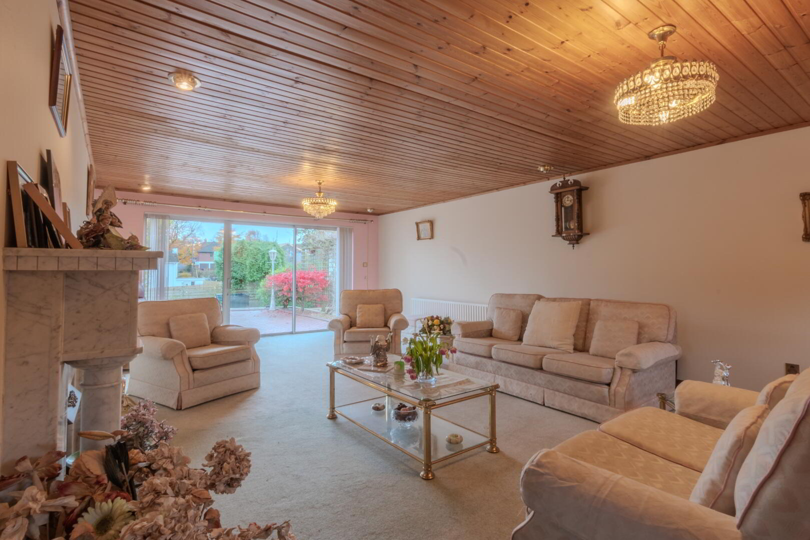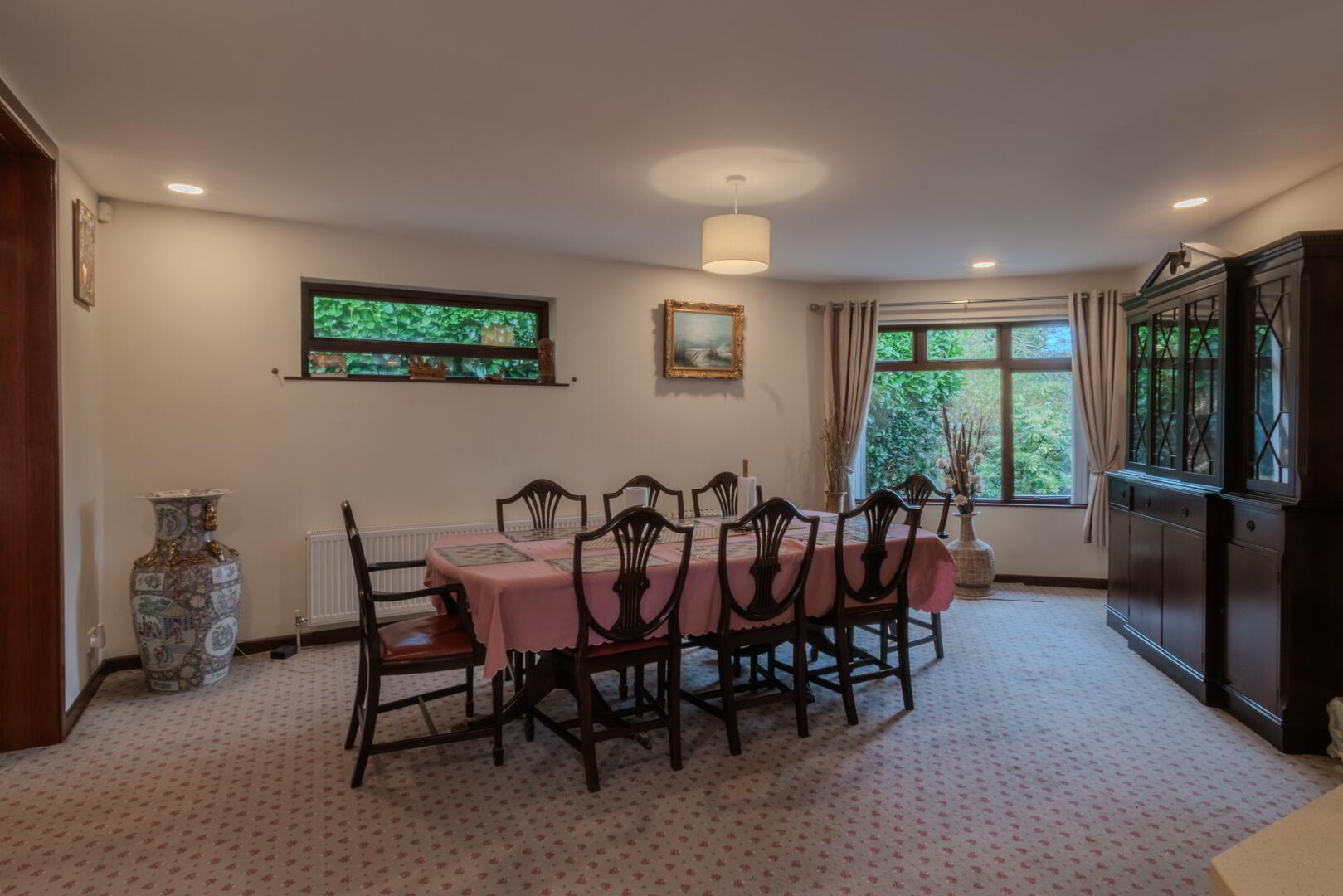 Externally, beautifully maintained gardens surround the property, with multiple patio areas providing ideal spaces for outdoor entertaining or quiet relaxation. A tarmac and paviour driveway offers ample parking, complemented by mature planting, and feature pond.