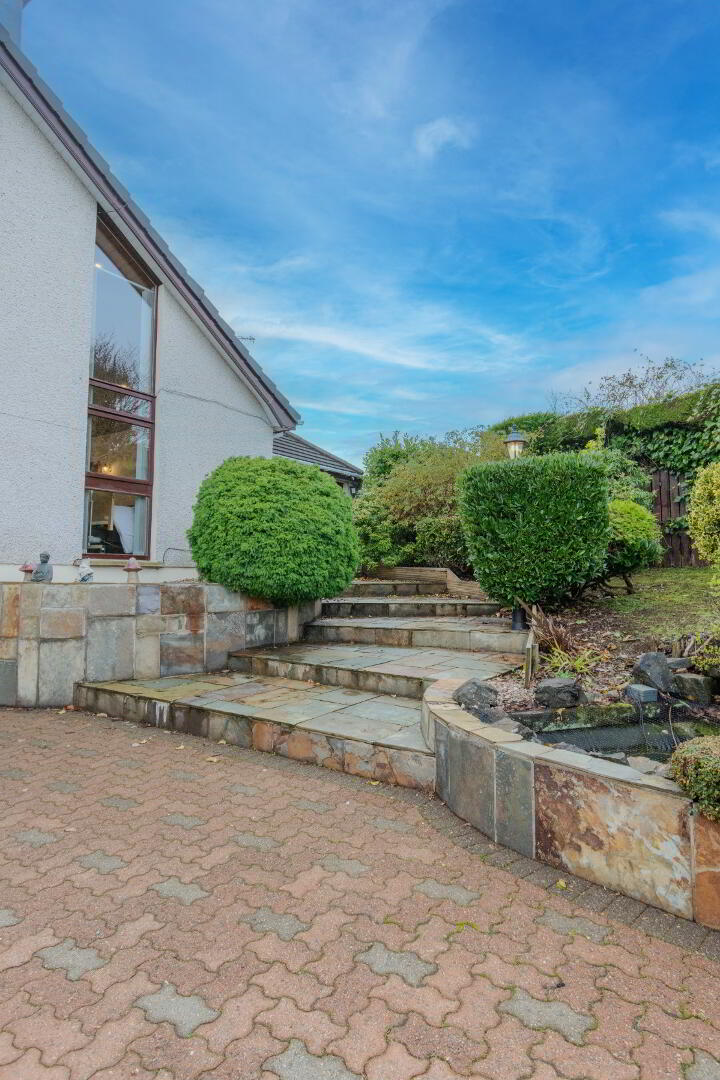 Paviour Drive fitting Multiple Vehicles, Entrance Pillars with Lighting, Mature Shrubbery & Foliage, Pedestrian Access to Rear, Access to Garage, Raised Pond, Raised Planters & Slate Steps to Front Door, Outside Lighting, Outside Tap, PVC Fascia & Guttering.