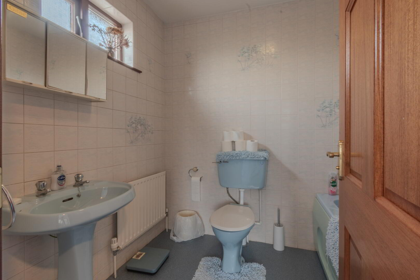 Linoleum Flooring, Fully Tiled Walls, Window to Side, 3-Piece Suite to include Wash Hand Basin, WC and Bath, Radiator.