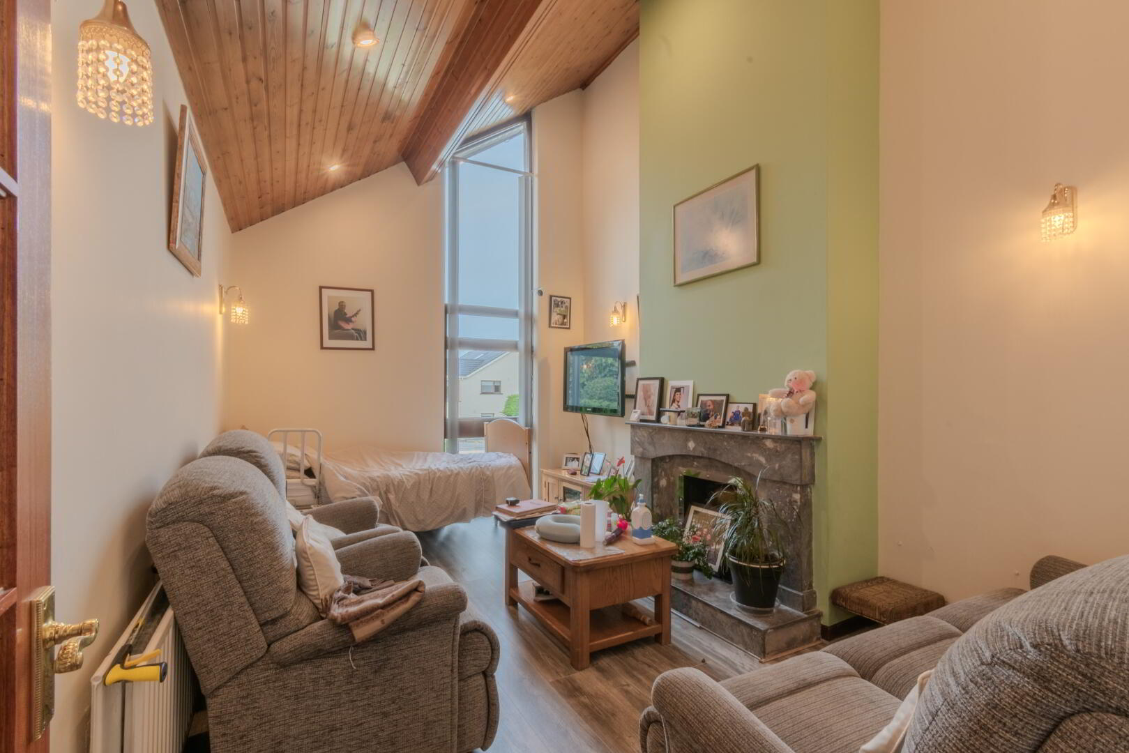 Carpeted Flooring, Window to Front, Sliding Doors to Upper Patio, Open Fire with Ornate Marble Surround, 2x Radiators, Socket Points.