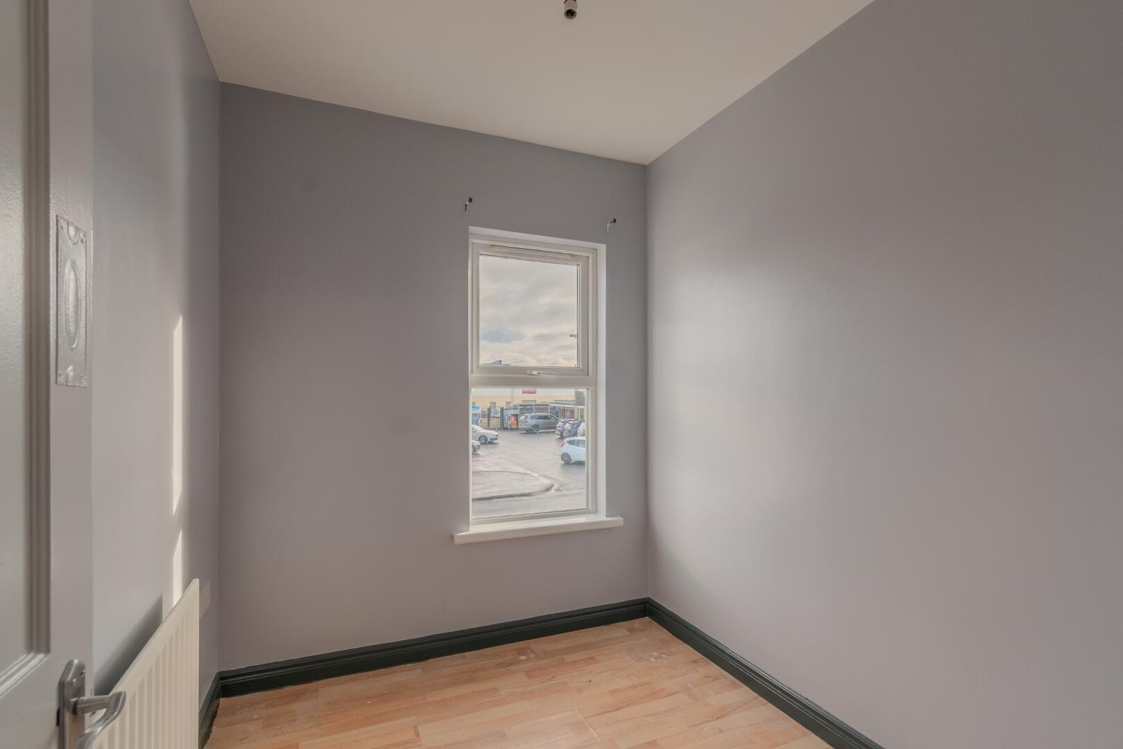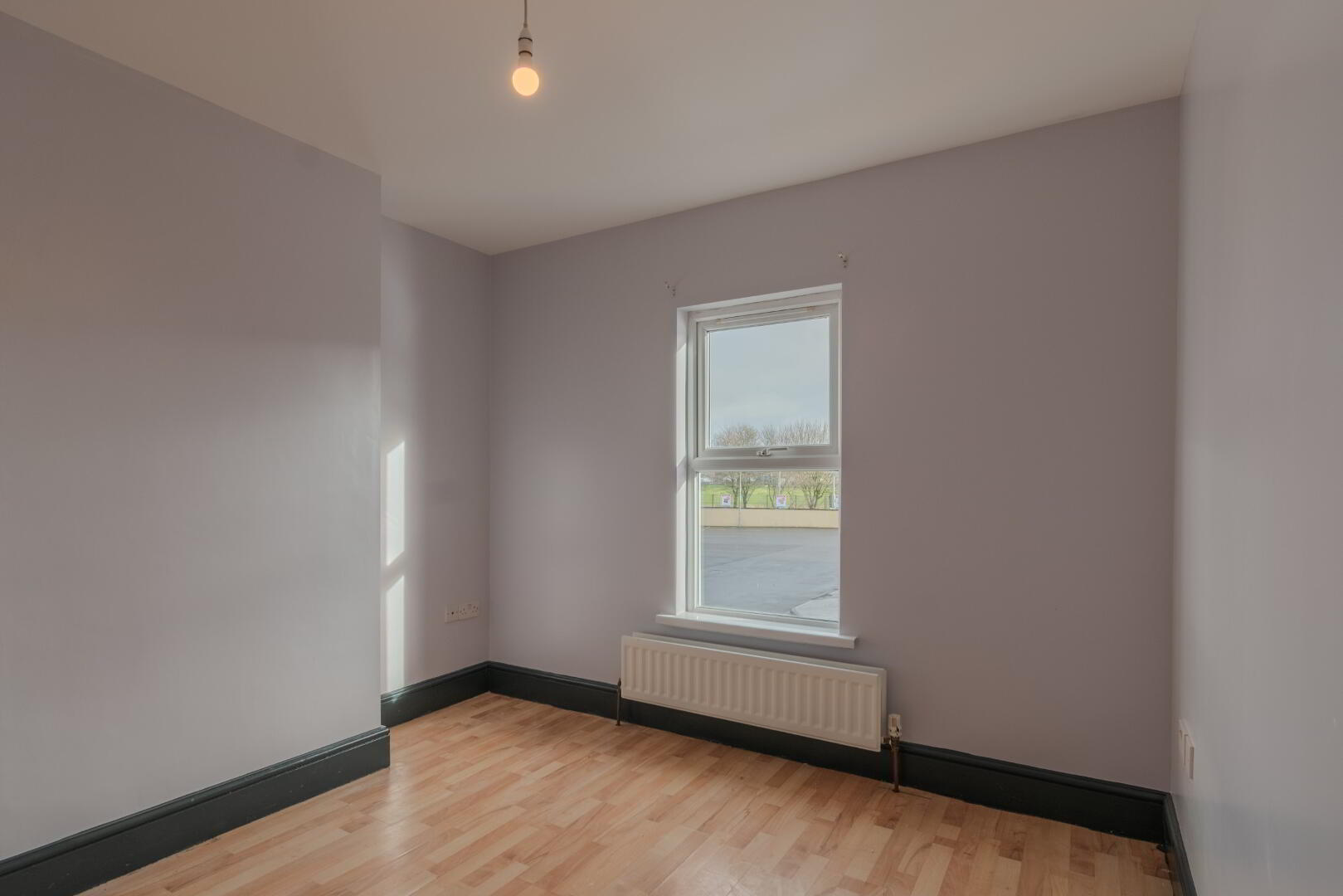 Wood Effect Laminate Flooring, Window with Front Aspect, Radiator, Socket Points.