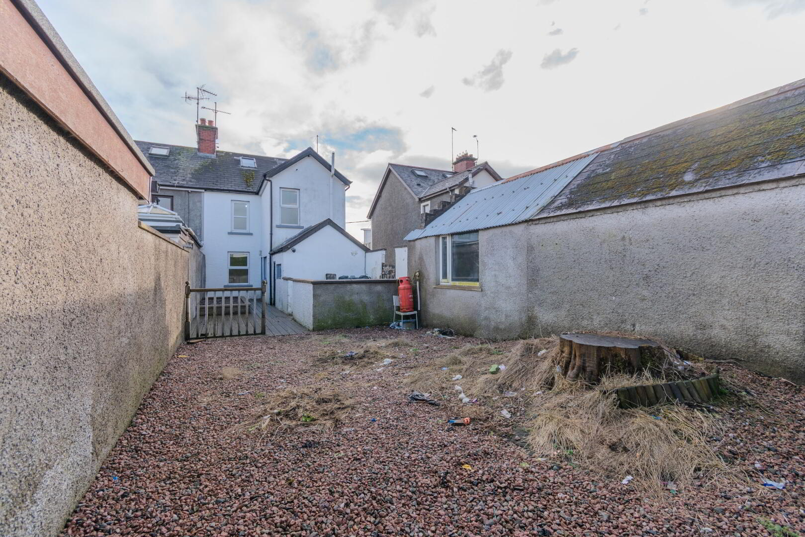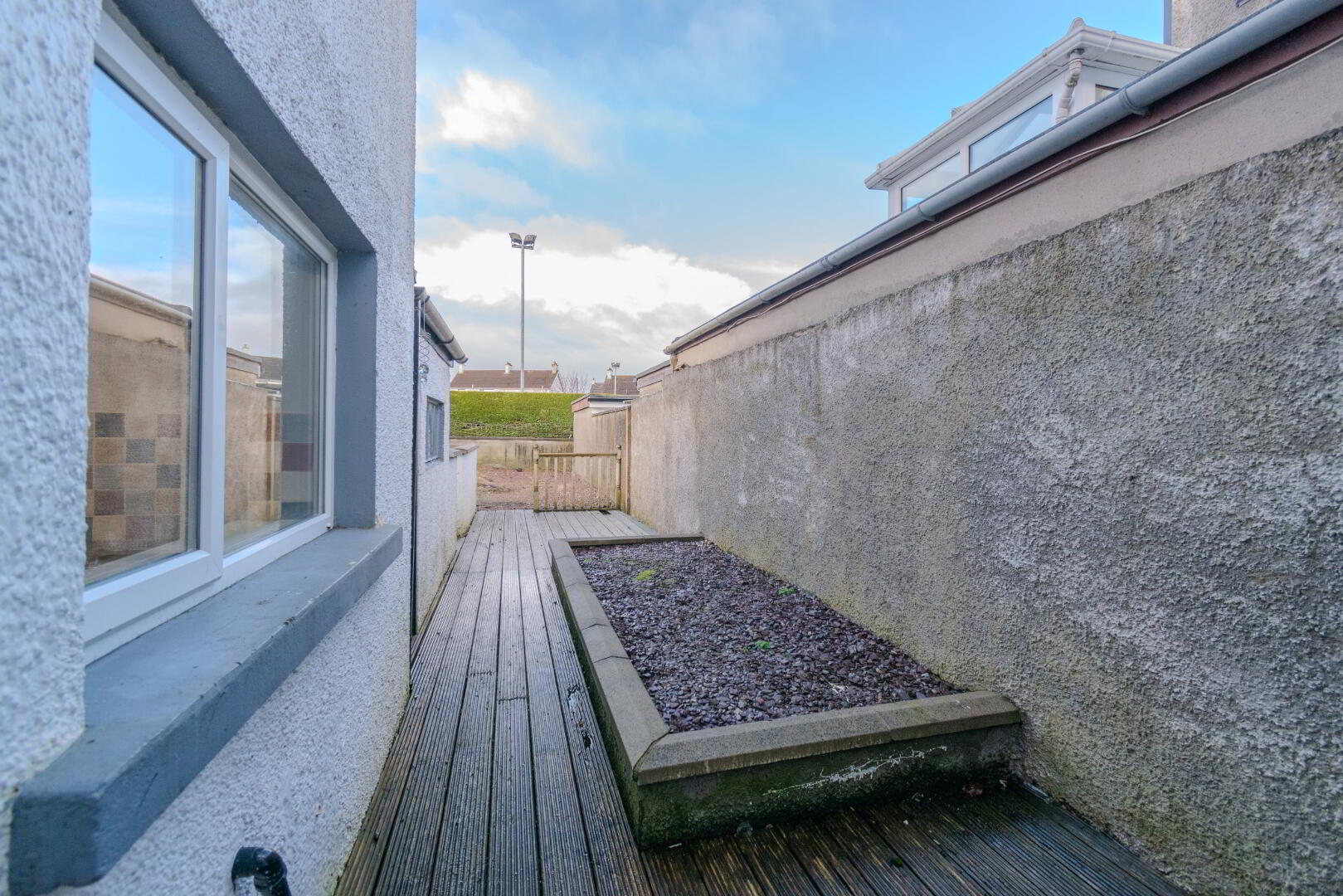 Decking Area with Raised Stoned Bed, Stoned Garden Space at Rear, Access to Driveway, Oil Tank.
