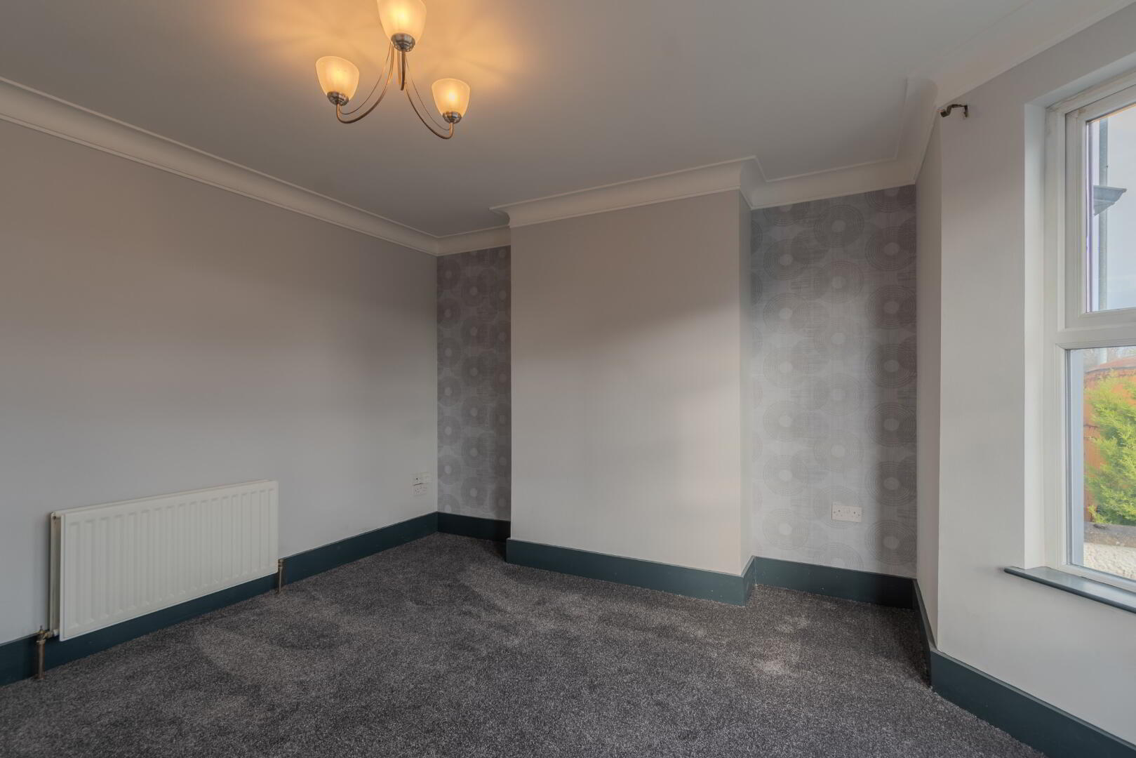 Window with Rear Aspect, Radiator, Socket Points.