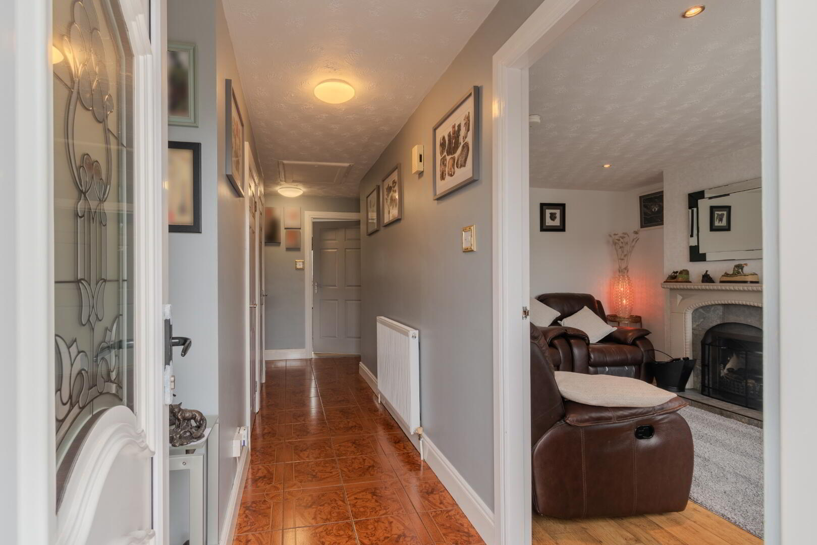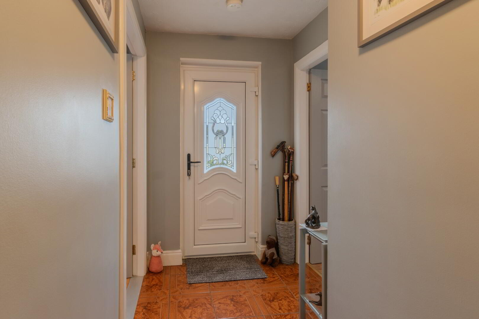 Tiled Flooring, PVC Front Door, Hotpress Cupboard with Tank & Shelving, Storage Cupboard, Attic Access, Radiator, Socket Points.