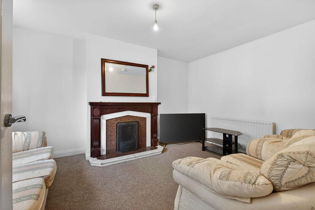 Carpeted flooring, window to front, radiator, socket points, decorative hearth with open fire. (Fire has back boiler which heats radiators and water)