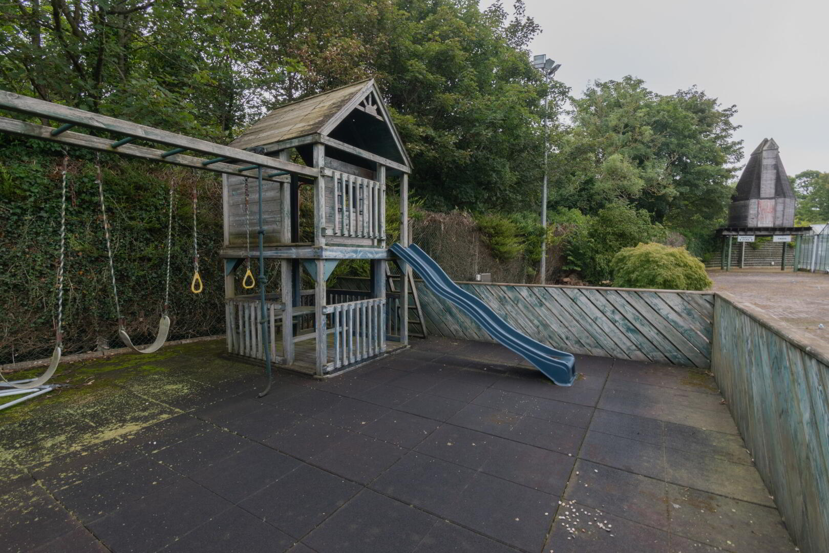 The unit consists of an accessible entrance with galvanised gates, a retail unit with storage area and W/C, and a large greenhouse to the rear. The unit sits on a large site with spacious outdoor areas with seating, a children’s play area, and a pond.
