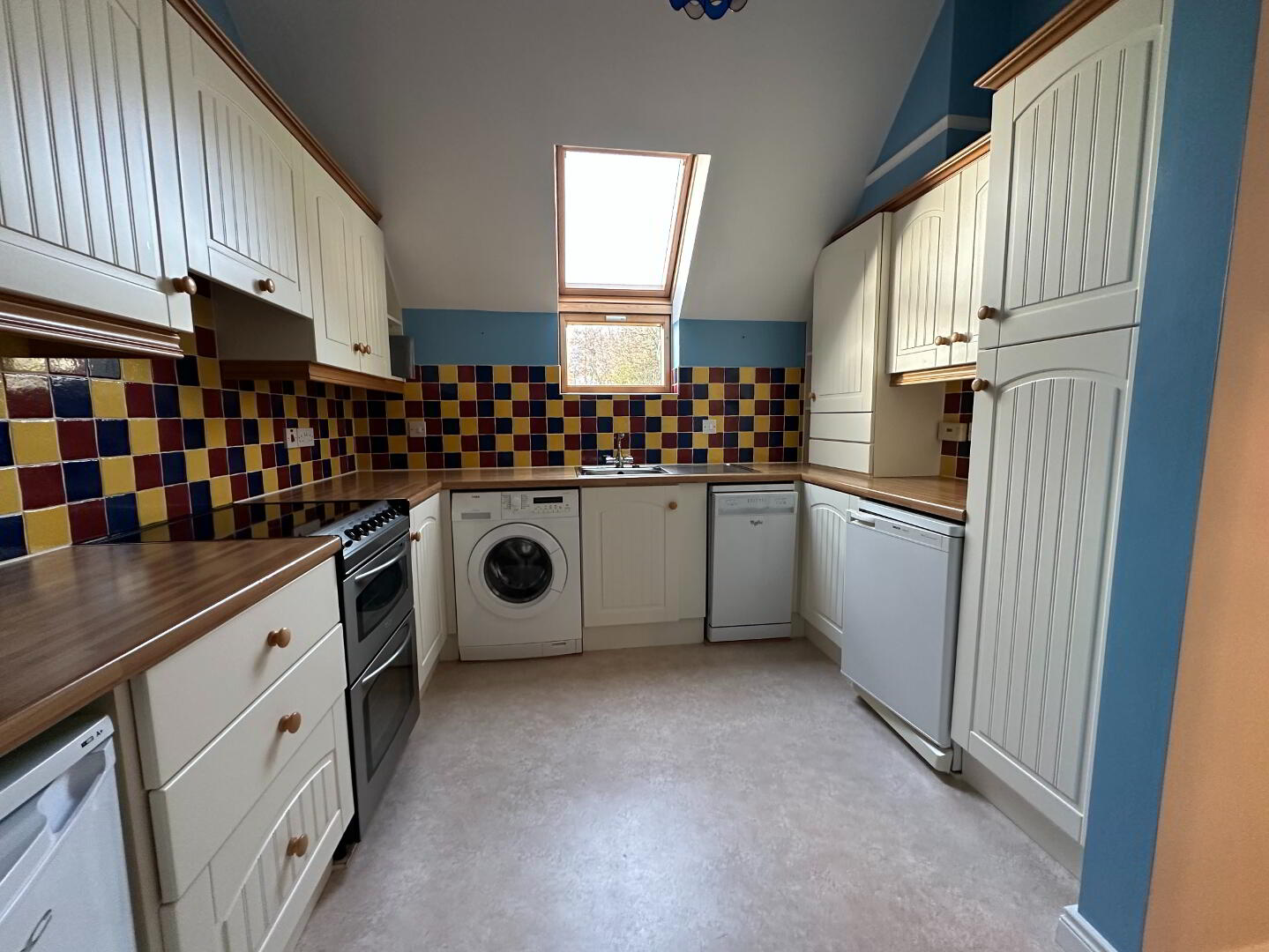 Range of high and low level units, under-counter fridge and freezer, slimline dishwasher, gas hob, electric oven.