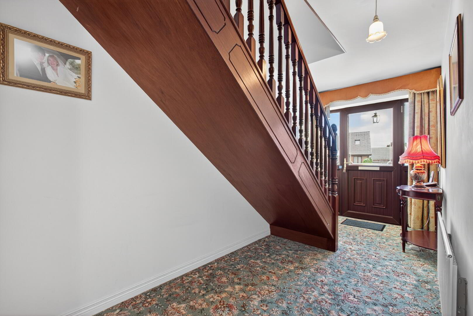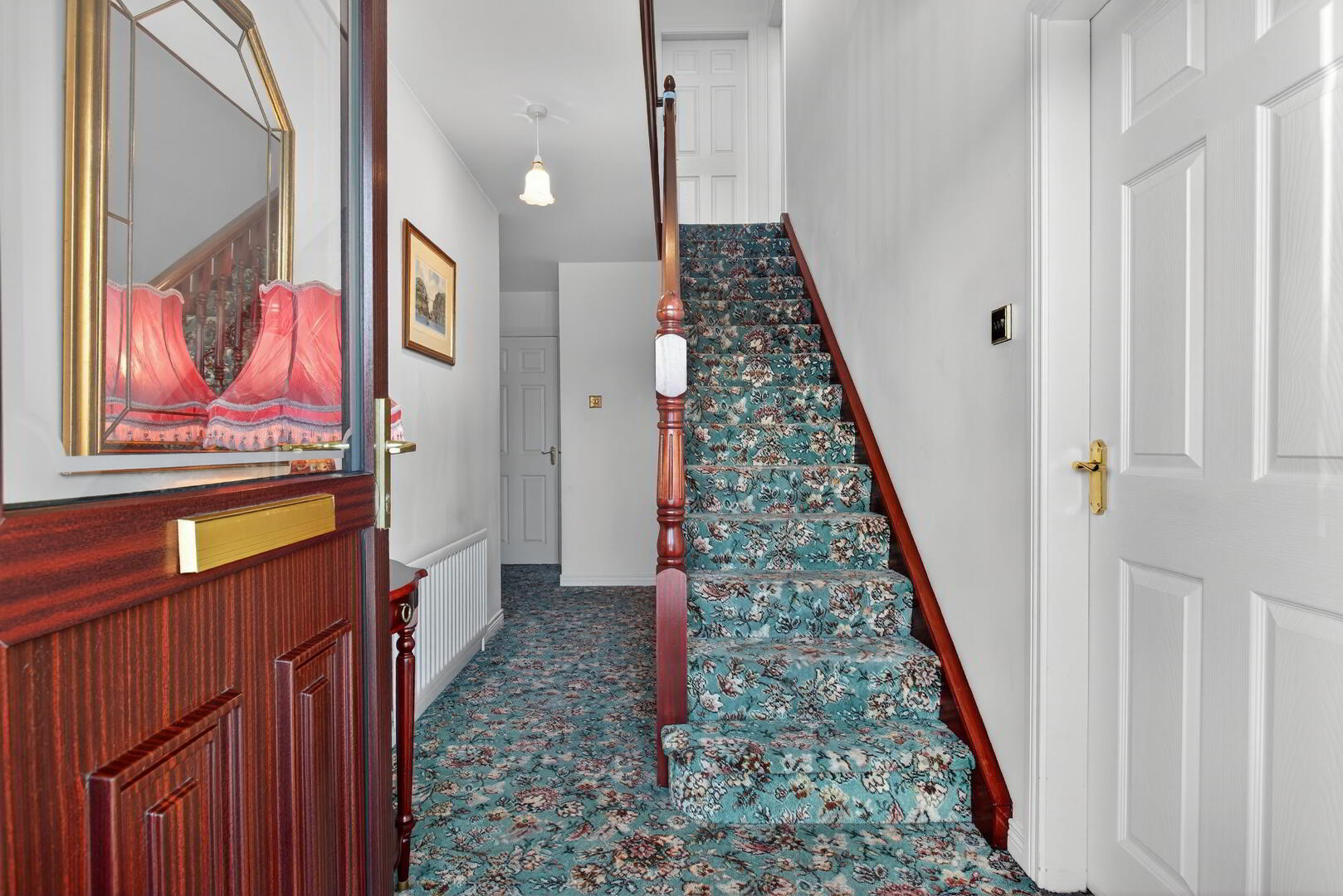uPVC double glazed door to front with double glazed side windows, radiator, telephone point, built in hot press and storage cupboard, staircase to first floor, doors into lounge, ground floor bedroom, bathroom and kitchen/diner