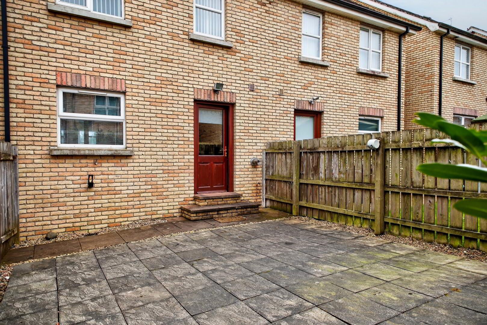 Enclosed paved rear garden with gated pedestrian access, outside lighting and tap