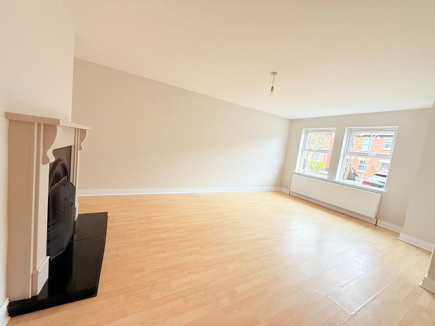 uPVC double glazed windows to front, radiator, laminated flooring, cast iron fireplace, painted surround and granite tiled hearth
