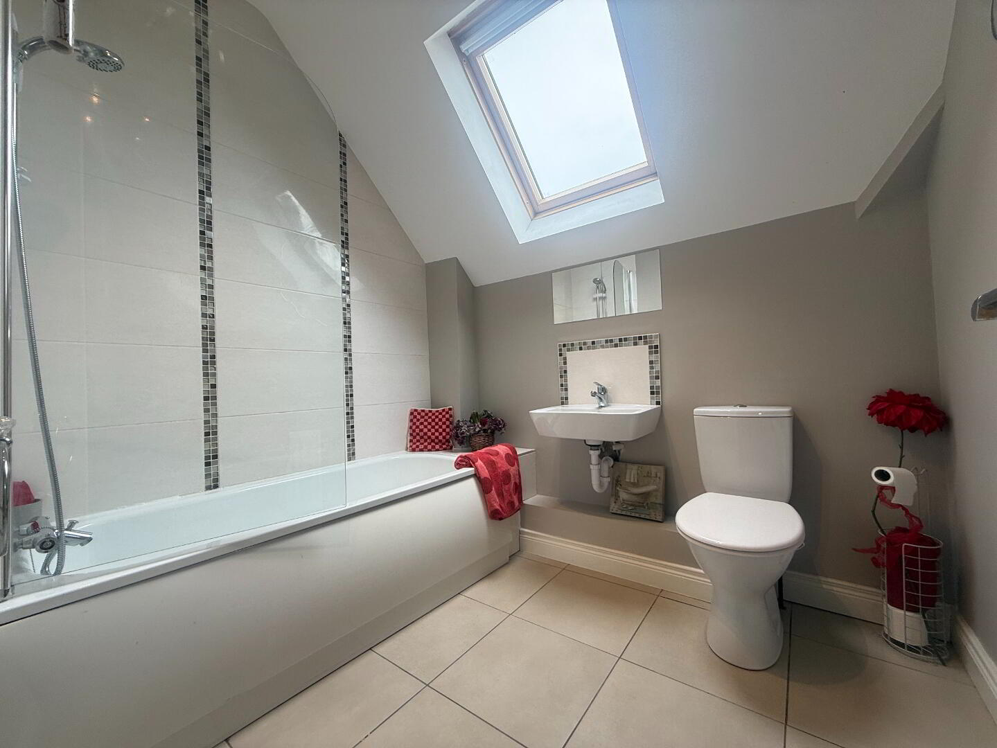The accommodation includes a contemporary ground floor WC and a first floor bathroom, both fitted with modern white sanitary ware and a thermostatically controlled bath/shower.
