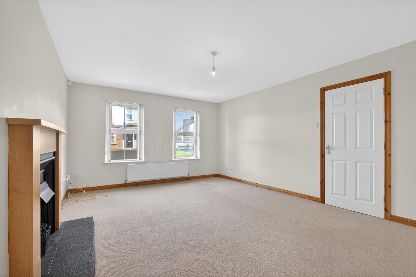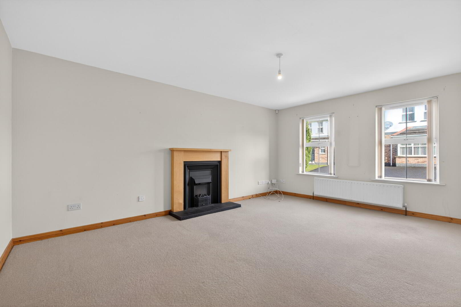 uPVC double glazed windows to front, radiator, electric fire set in cast iron fireplace with oak surround and tiled hearth