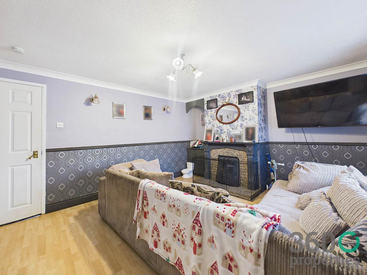 Open fire with wooden surround, tile inset and hearth. Laminate floor.