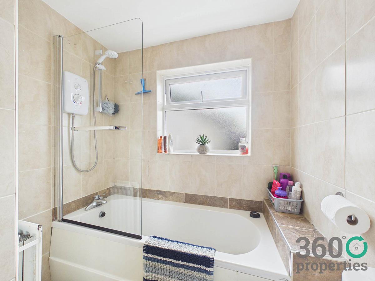 Three piece suite comprising of low flush w/c, pedestal wash hand basin and bath with electric Mira shower over. Hot press. Fully tiled walls and floor.
