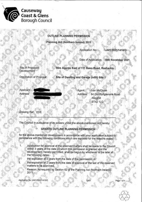 Site 1, Approx. 45M East Of 111 Bann Road