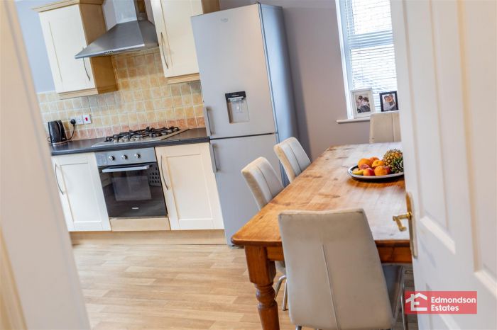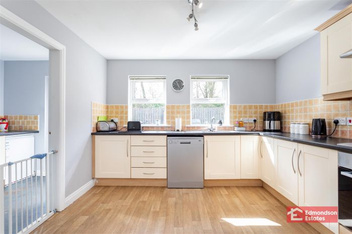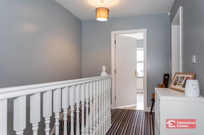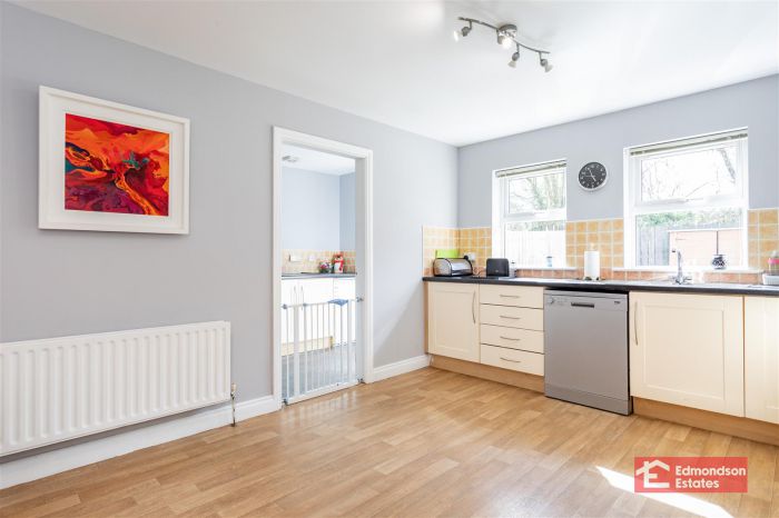Internally the property comprises an entrance hall, lounge, kitchen with informal dining area, utility room, furnished cloakroom, three bedrooms with principal en-suite and a family bathroom.