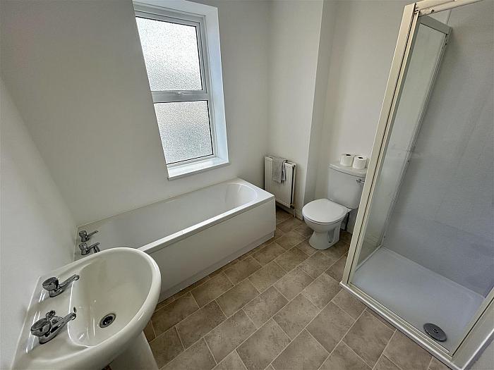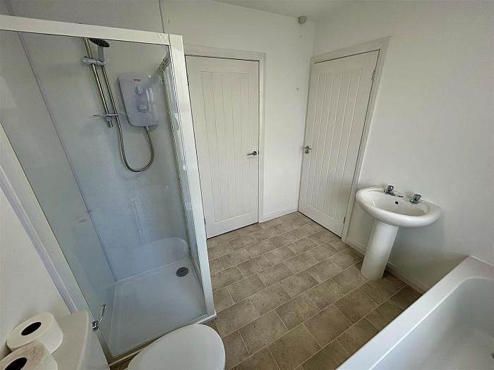 Refitted WC and Bath. WHB. Shower unit with new electric shower. Walk in hot press cupboard.