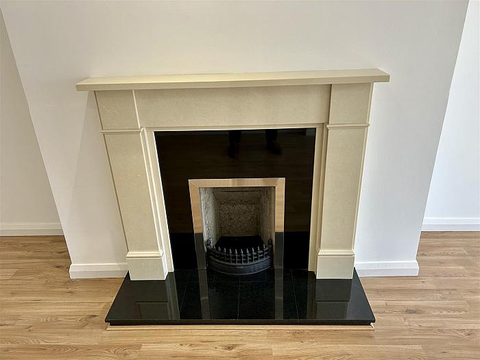 New granite fireplace and hearth. Laminate flooring. LED ceiling lights. Under stairs cupboard.