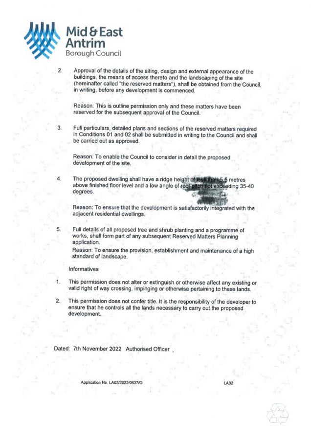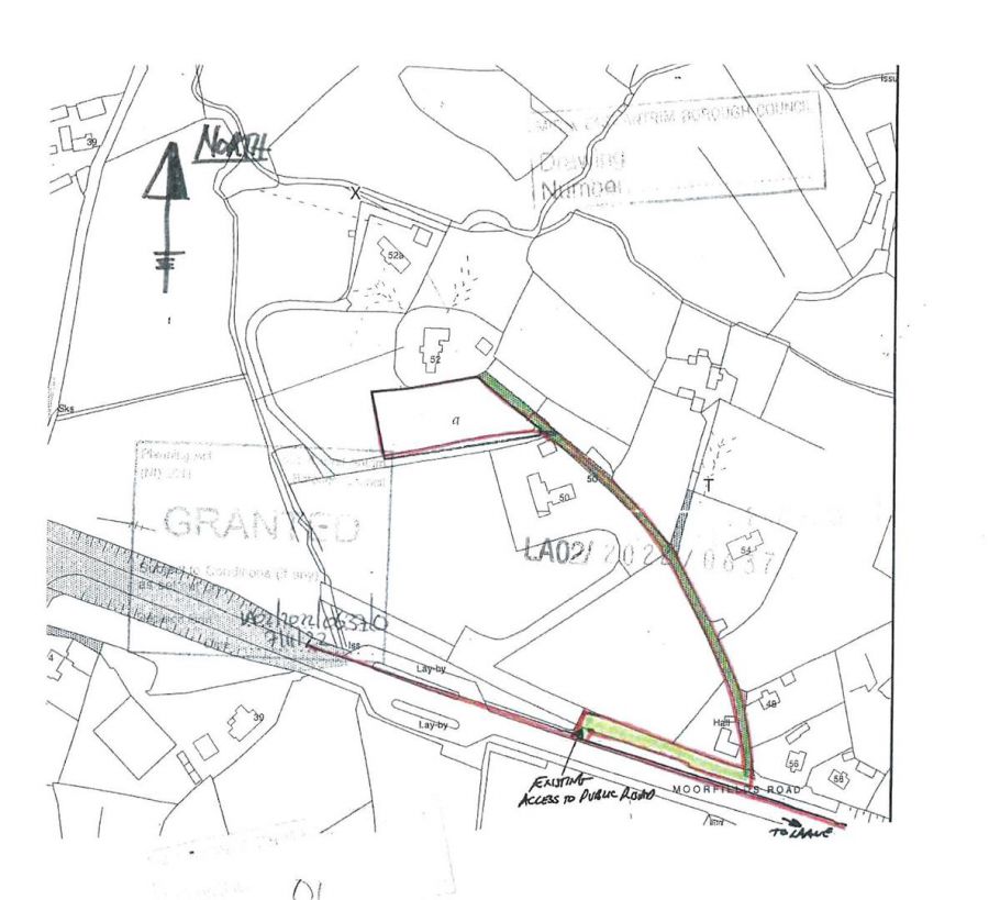Edmondson Estates are delighted to bring to market this elevated site overlooking Ballymena. The site is circa 0.68 acres with outline planning (Ref: LA02/2022/0637/O dated 7th November 2022|). The planning is outline for a detached bungalow with a ridge height of less than 5.5 metres. Accessed by way of private and shared laneway off the Moorfields Road this site is only minutes away from the Larne Road Roundabout and M2, and only moments from Ballymena town centre.