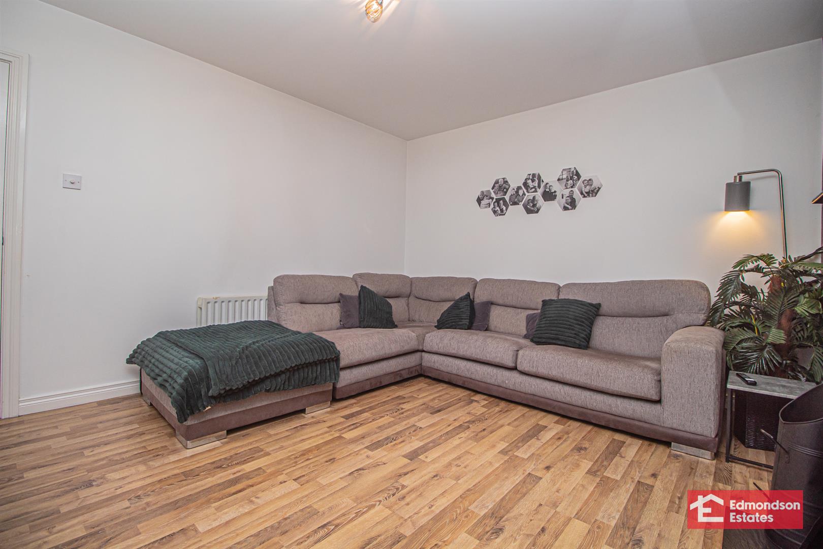 Focal point feature exposed brick wall with recessed wood burning stove. PVC double glazed French doors to garden. Tiled floor.