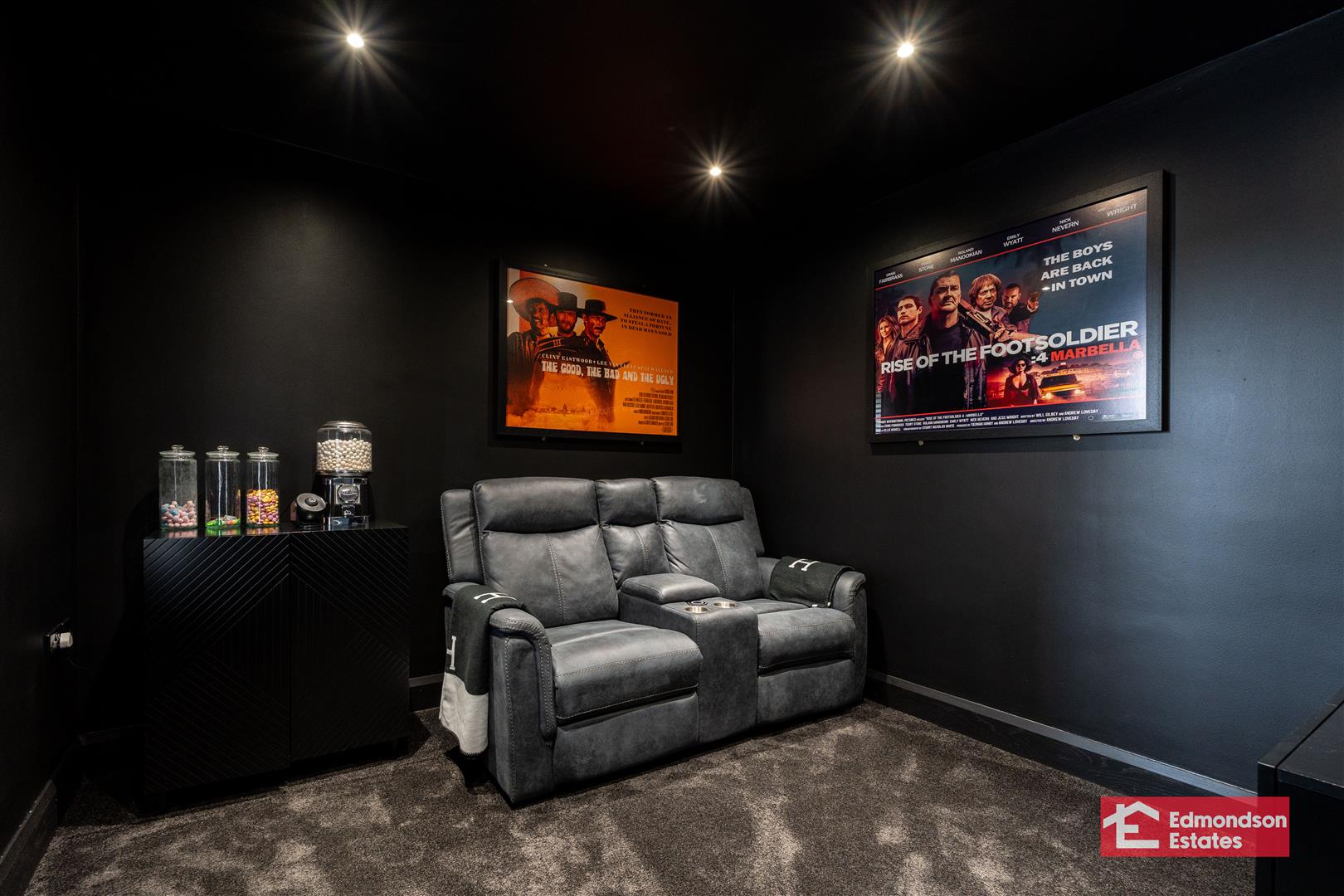 Edmondson Estates are delighted to bring to market this absolutely stunning detached four bedroom home of circa 263 sqm / 2,829 sqft set on a site of circa 0.8 acres. This impressive detached home offers generous living space complimented by professionally landscaped gardens. The property boasts three reception rooms, providing plenty of space for entertaining, relaxing, or working from home. A dedicated cinema room adds to the home's appeal, offering great space to unwind. The well-appointed kitchen is both stylish and practical, while the spacious bedrooms, with the principal having a walk in dressing room and en-suite shower room.