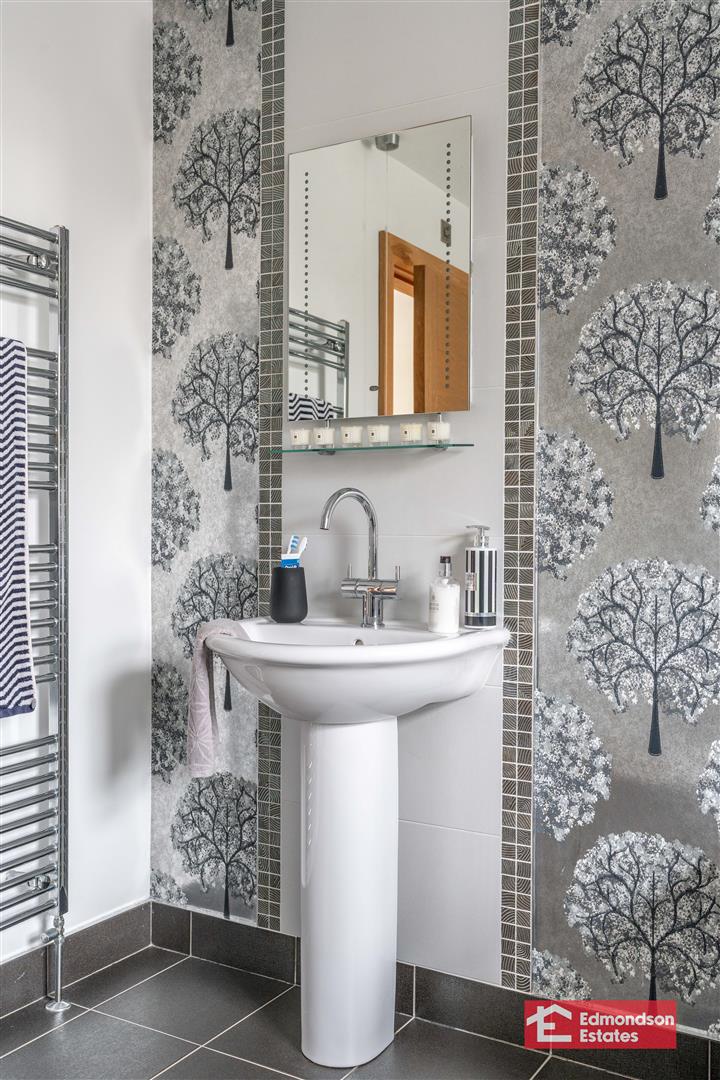 LFWC and WHB. Jacuzzi style corner bath. Large double shower. Towel radiator.