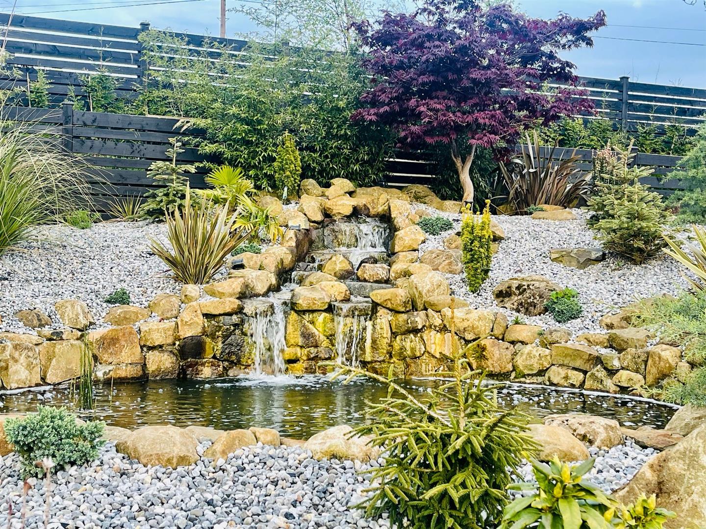 Professionally landscaped gardens Incl. Pond, Patio Area & LED Lighting throughout