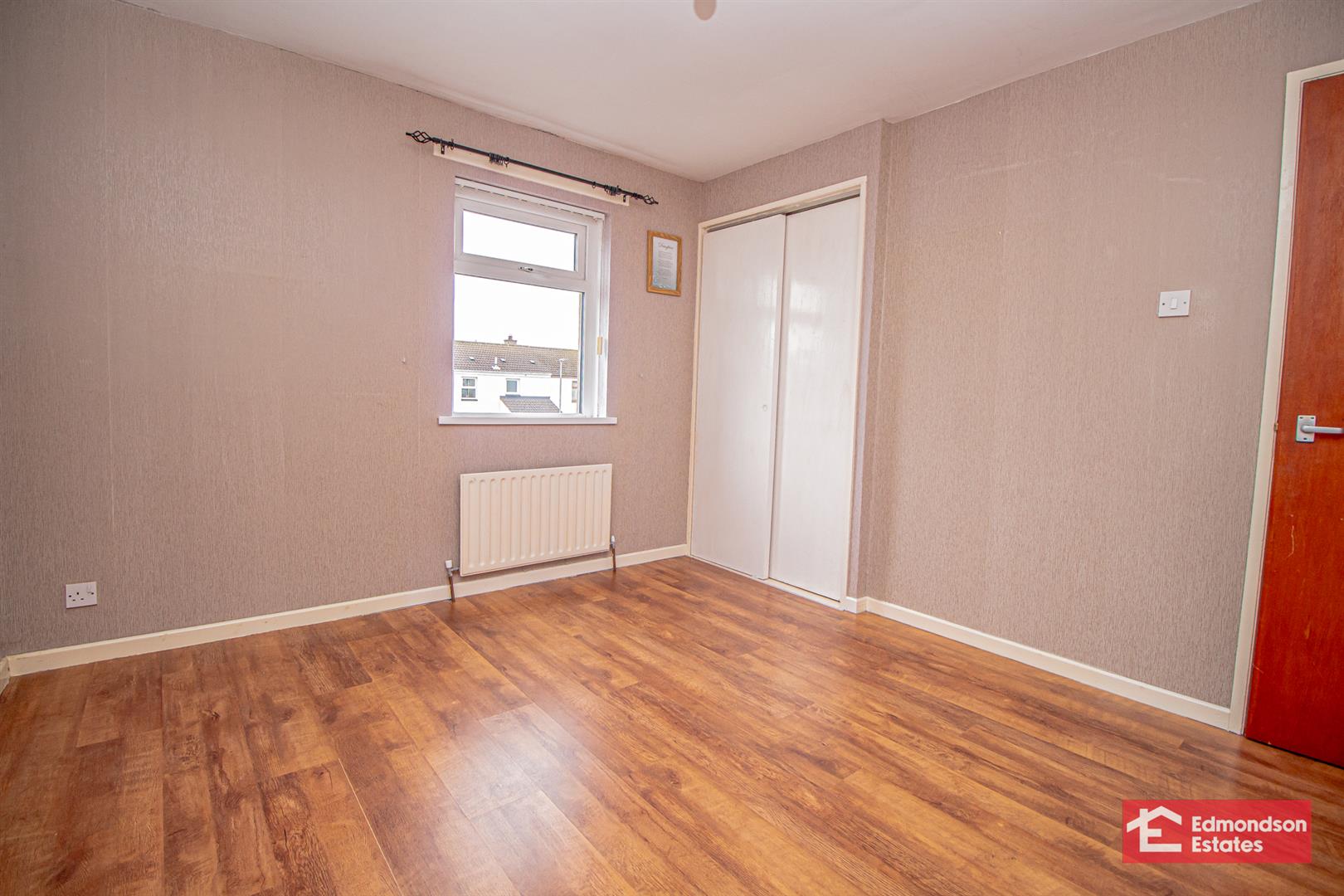 Access to wardrobe. Wood laminate floor covering.