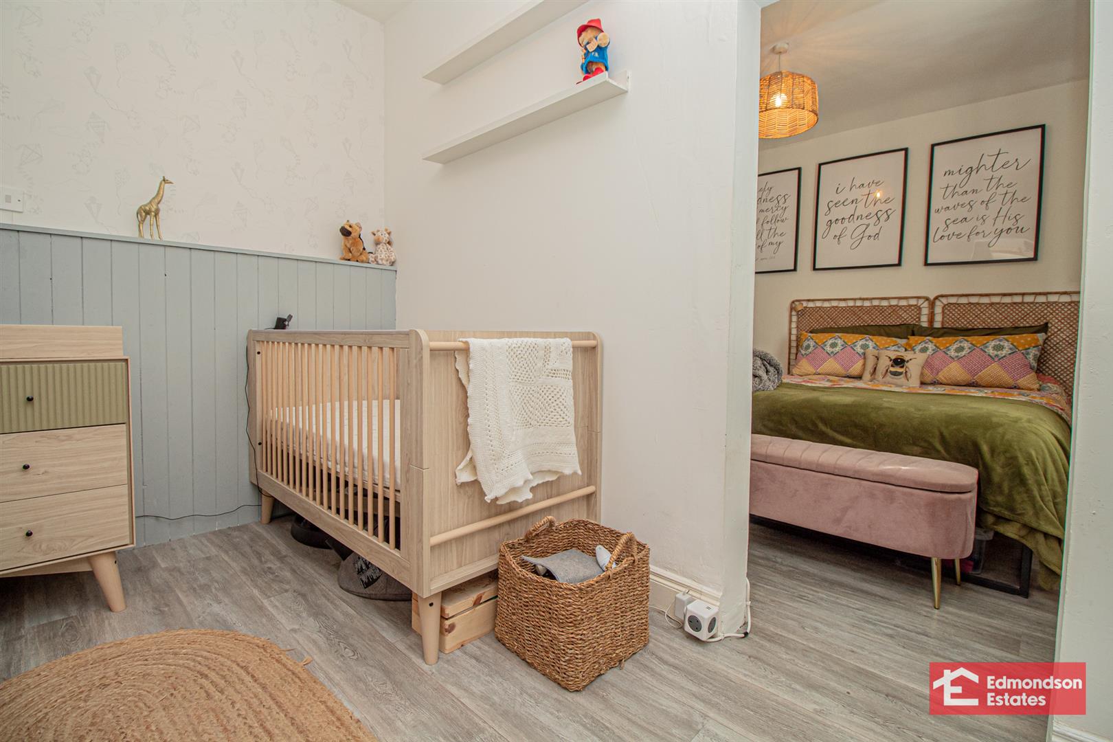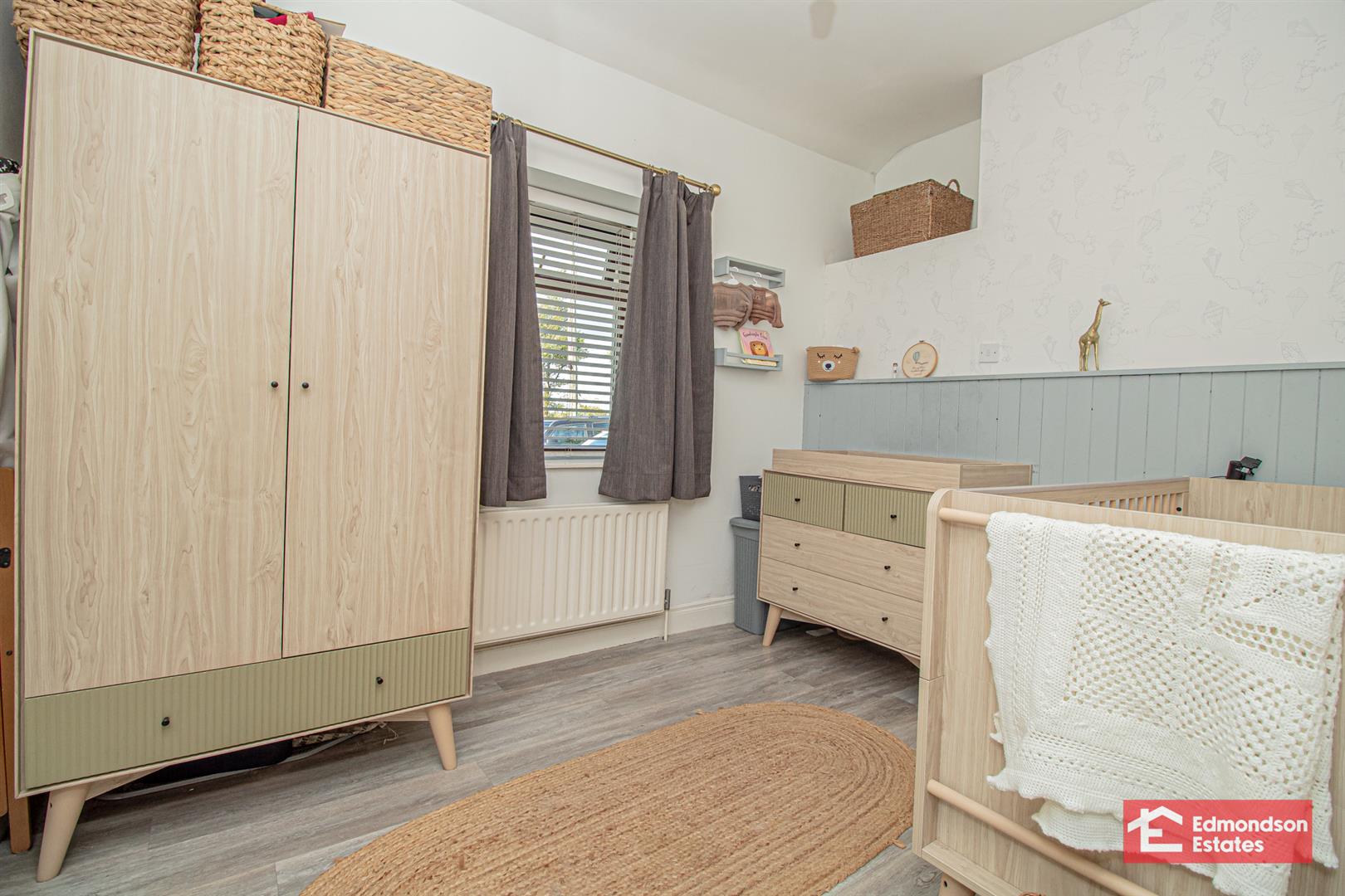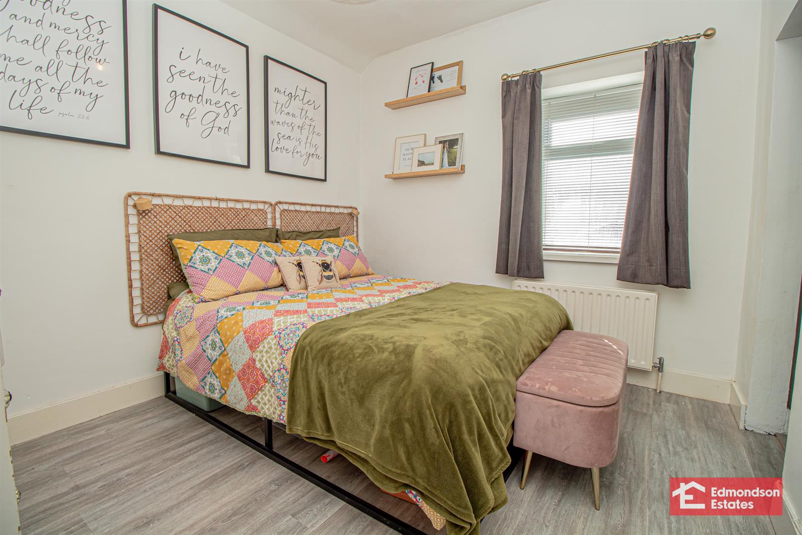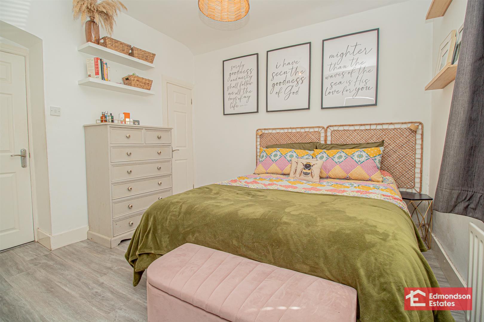 widest points. Modern fitted shaker style kitchen with high and low level storage units and work surfaces. Space for fridge freezer and washing machine. Stainless steel sink unit. Beko range oven with 5 ring electric hob. Access to roof space. Part tiled walls.