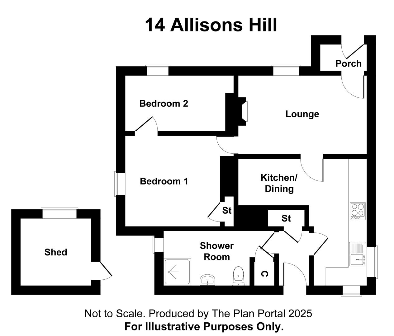 Internally the property comprises an entrance porch, lounge with multi-fuel stove, two bedrooms, kitchen with informal dining area and shower room.