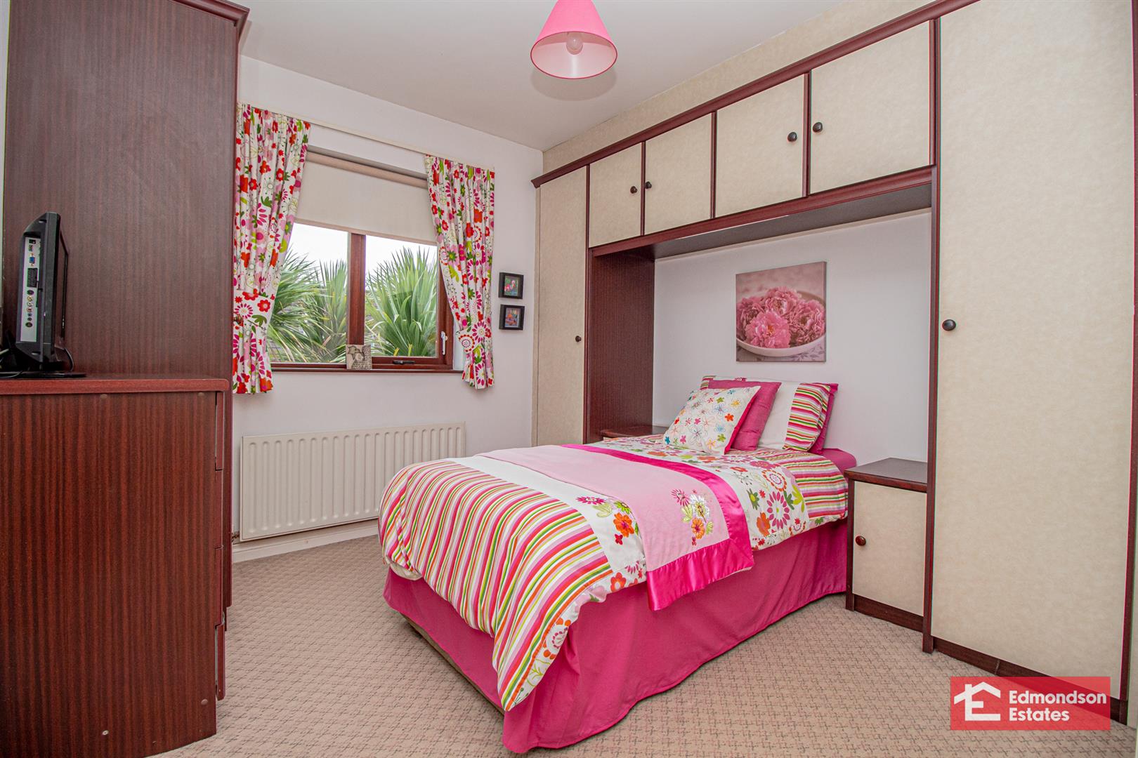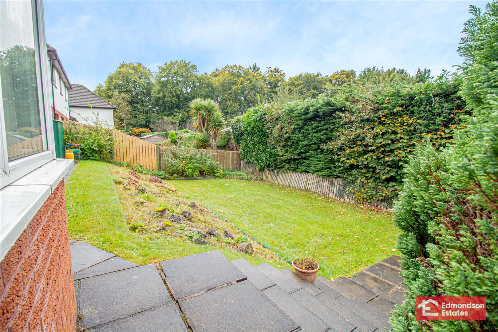 Asphalt driveway with off street parking for multiple cars. Gardens to front laid in mature shrubs and lawns. Rear gardens laid in lawns and raised bed and greenhouse. Rear gardens will avail from the sun from mid morning until setting. Outside tap and Oil tank.