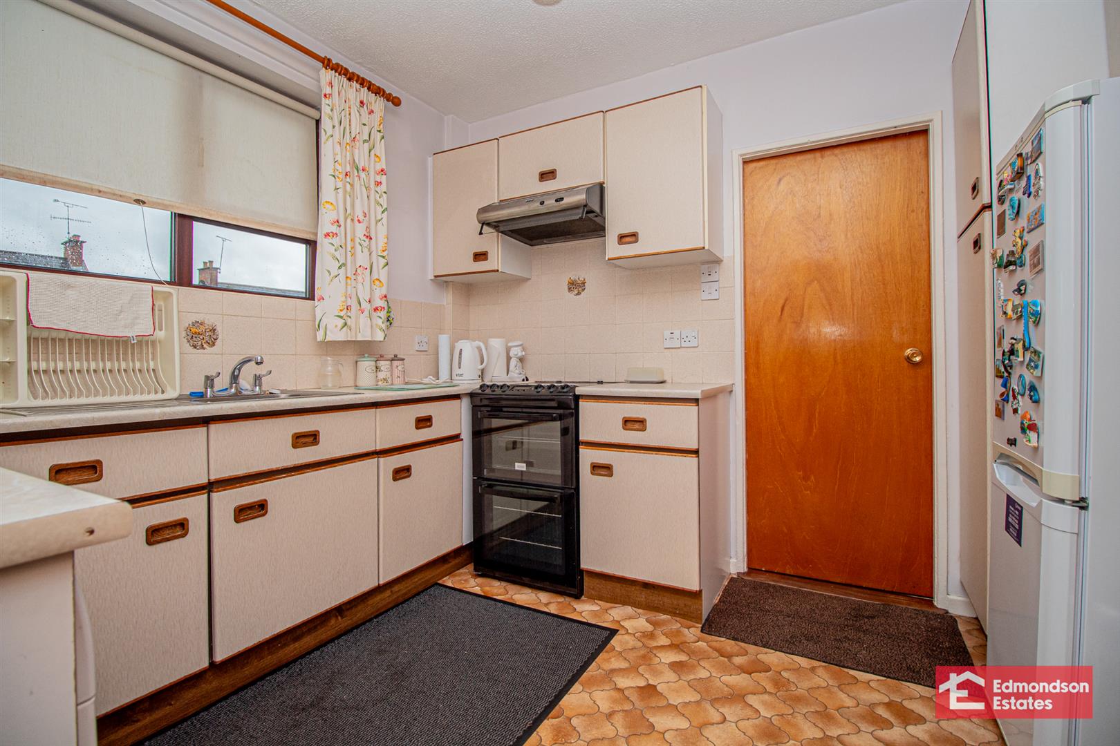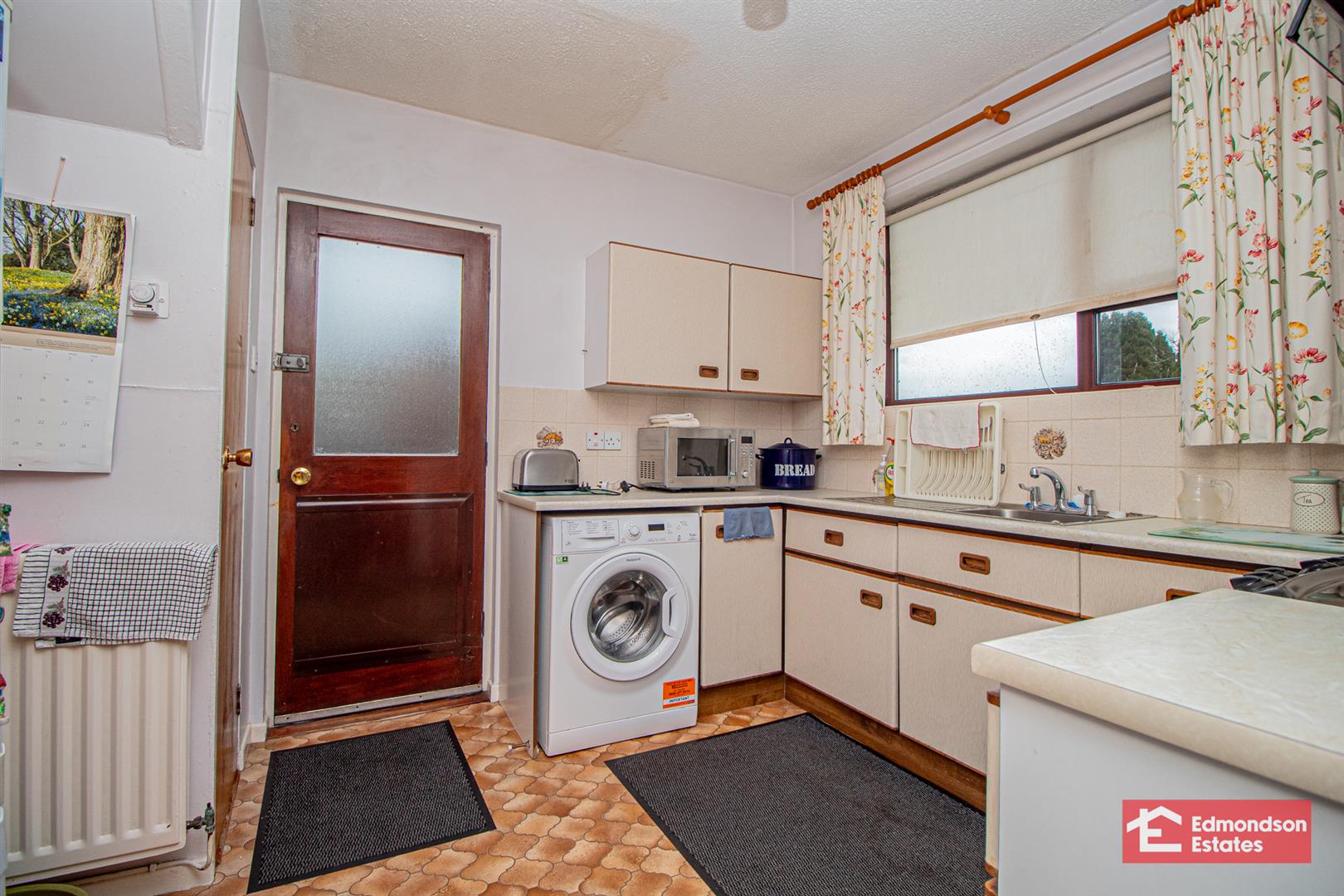 widest points. Fitted kitchen with high and low level storage units and work surface. Stainless steel sink unit. Cooker. Space for washing machine and fridge freezer. Hardwood glazed rear door to garden. Access to shelved store.
