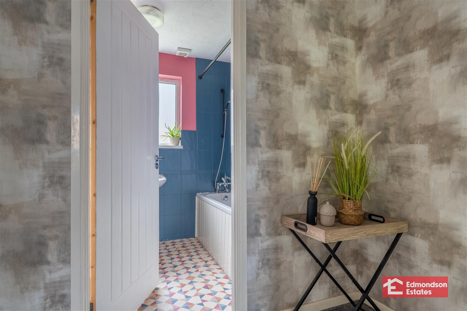 PVC double glazed composite front door with side screen. Stairwell to first floor. Access to under stair stoor. Google Nest thermostat for heating system.