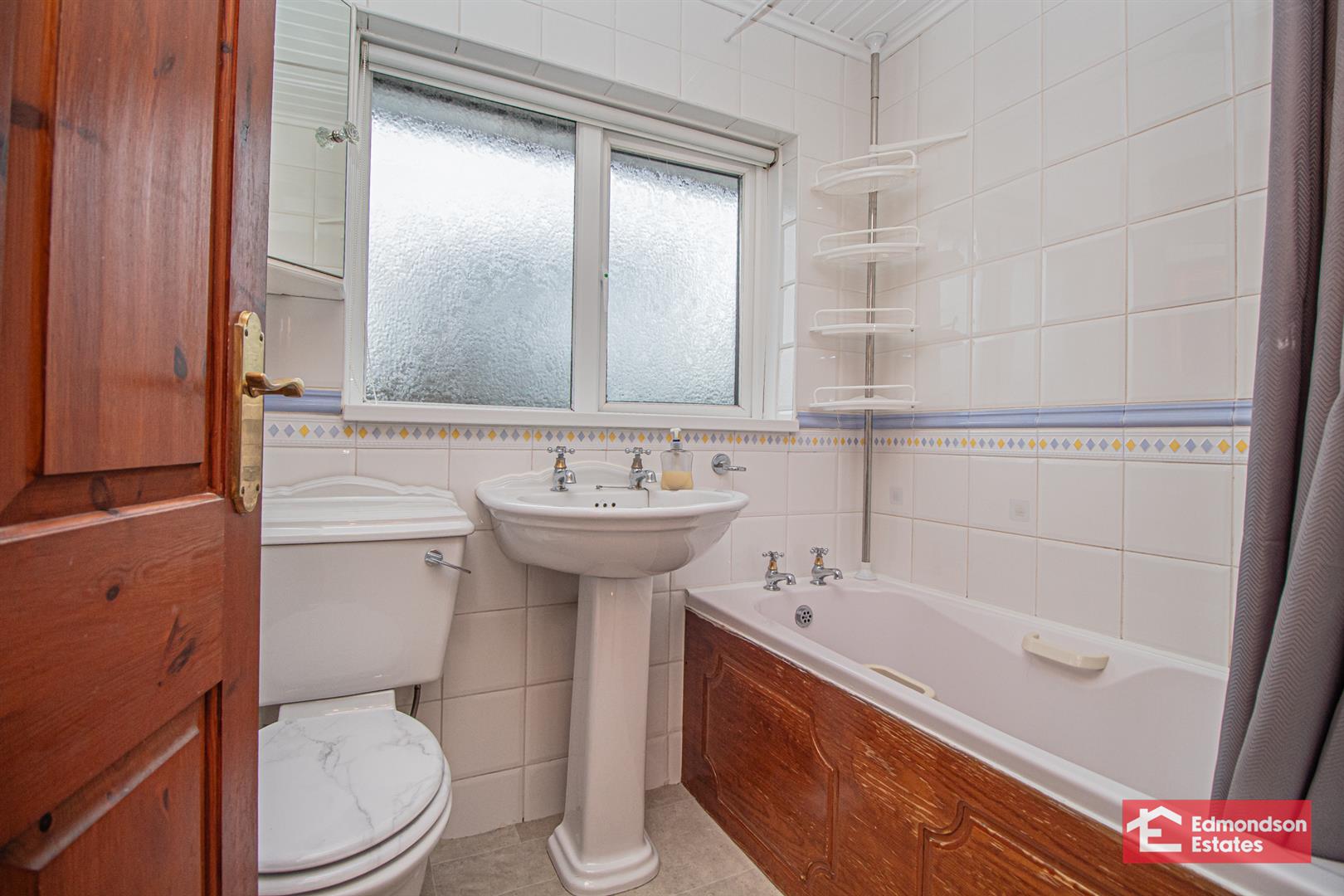 Modern fitted three piece suite comprising panelled bath with electric shower over, wash hand basin and WC. Fully tiled walls.