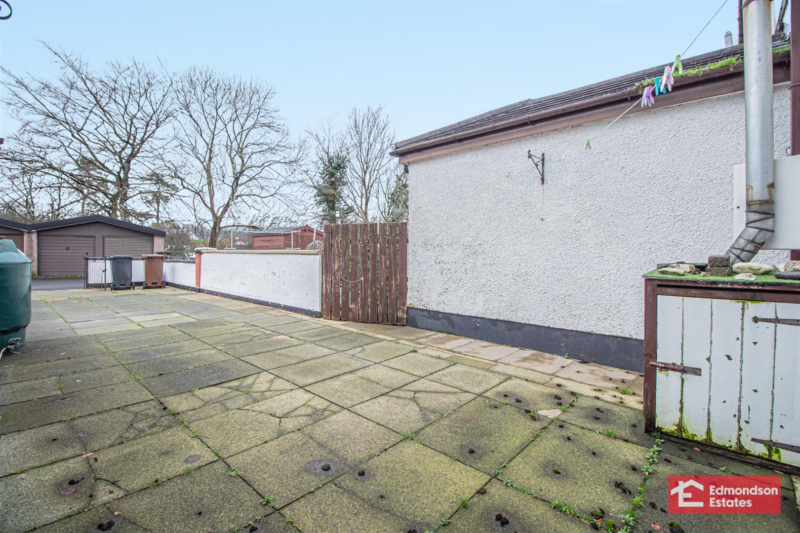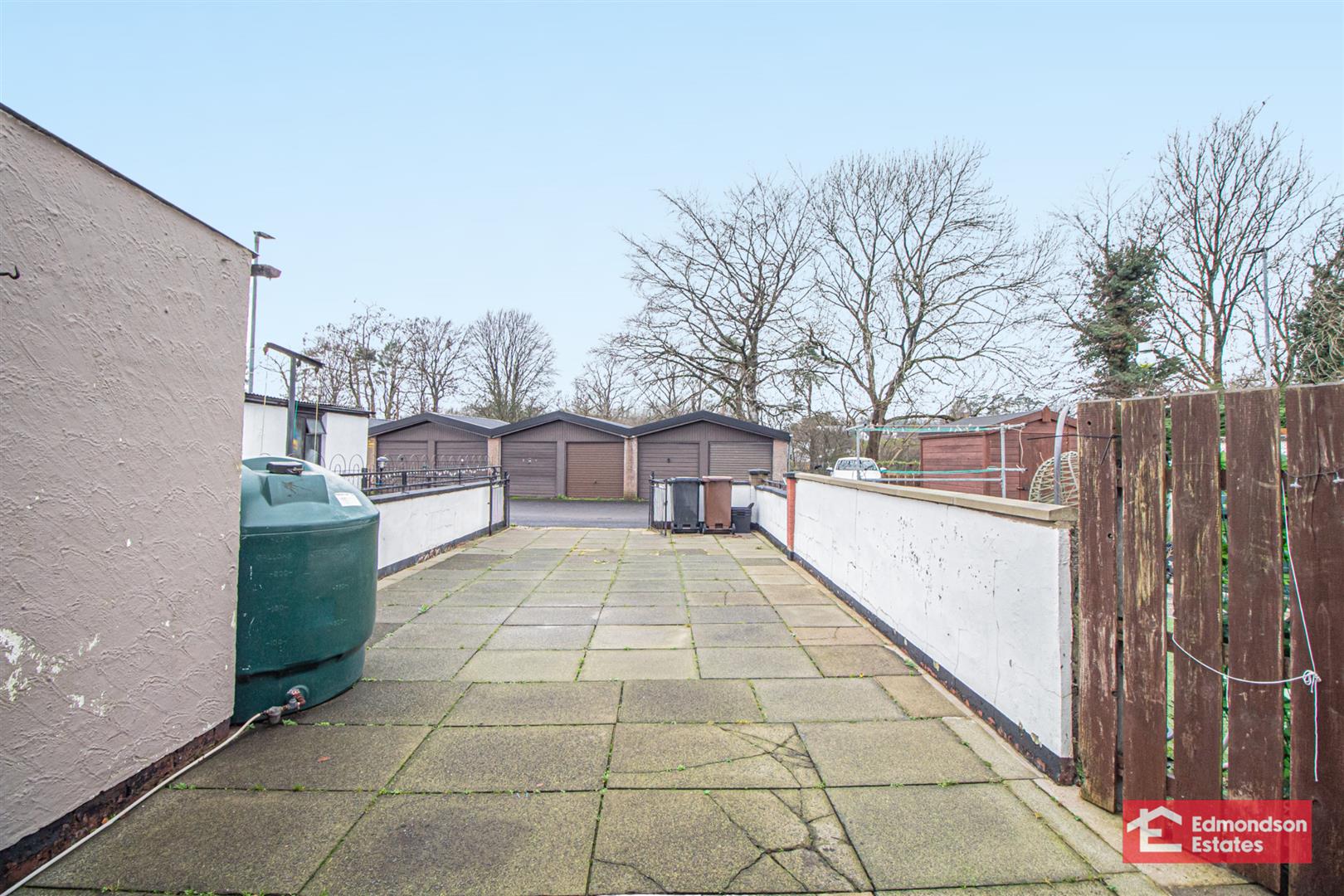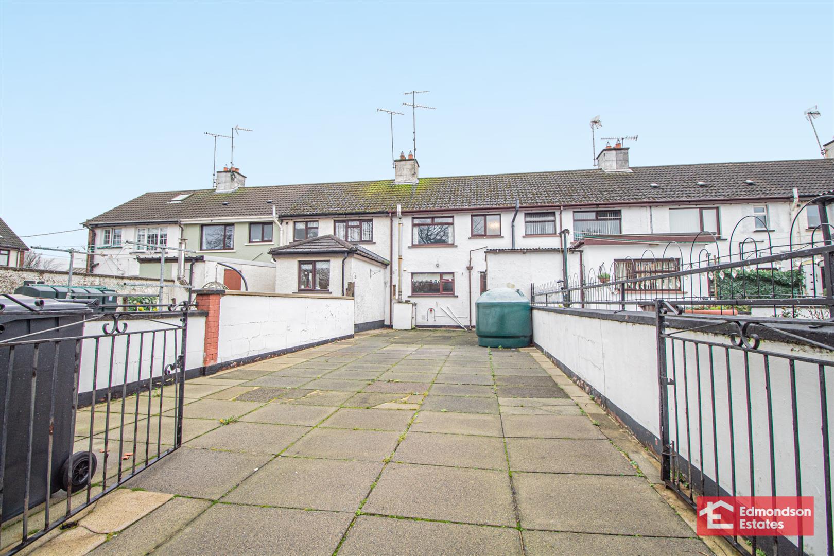 Low maintenance, private rear yard in paving with cast iron entrance gates. Space for off street parking.