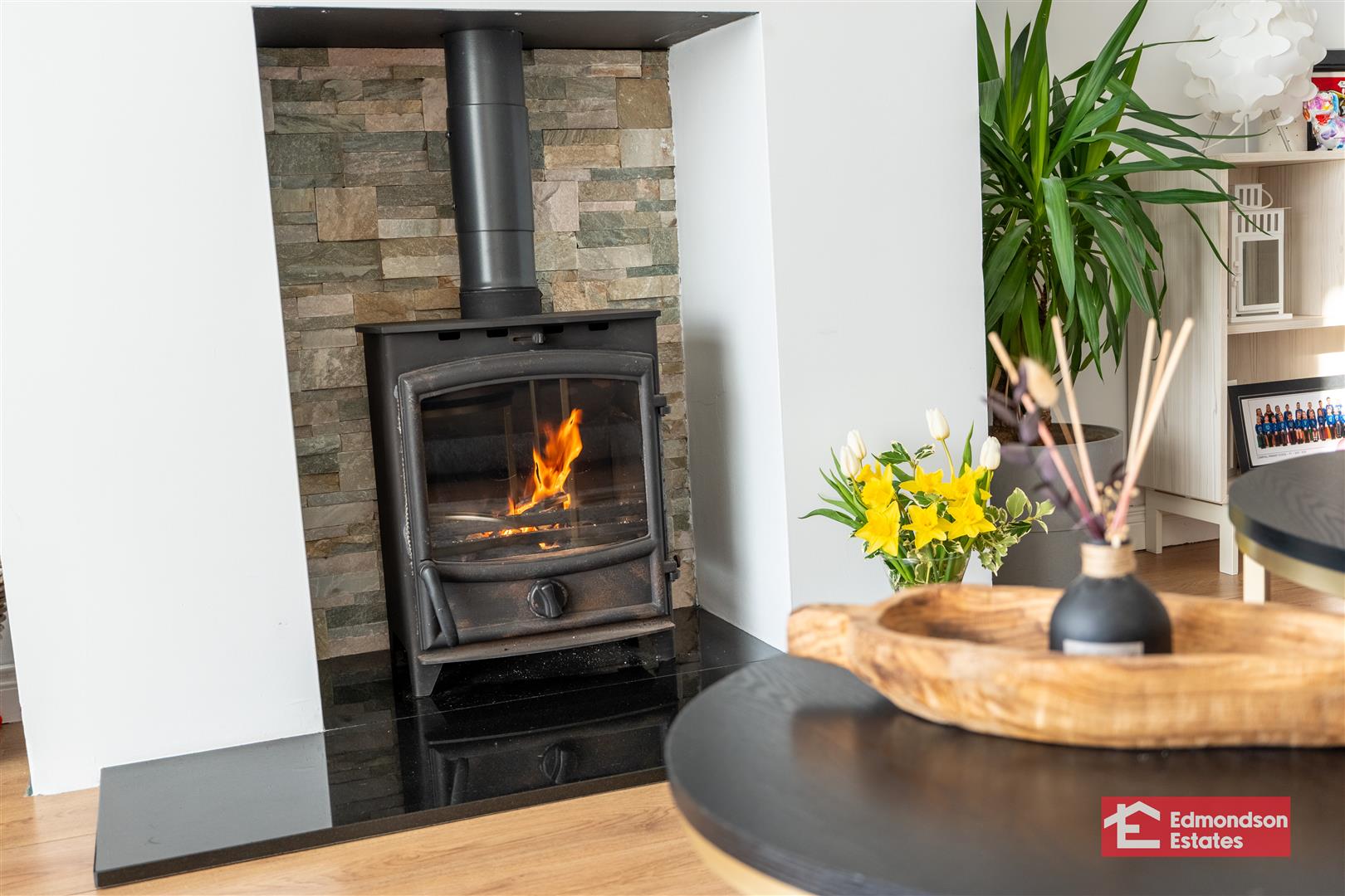 Multi fuel stove. Laminate flooring.