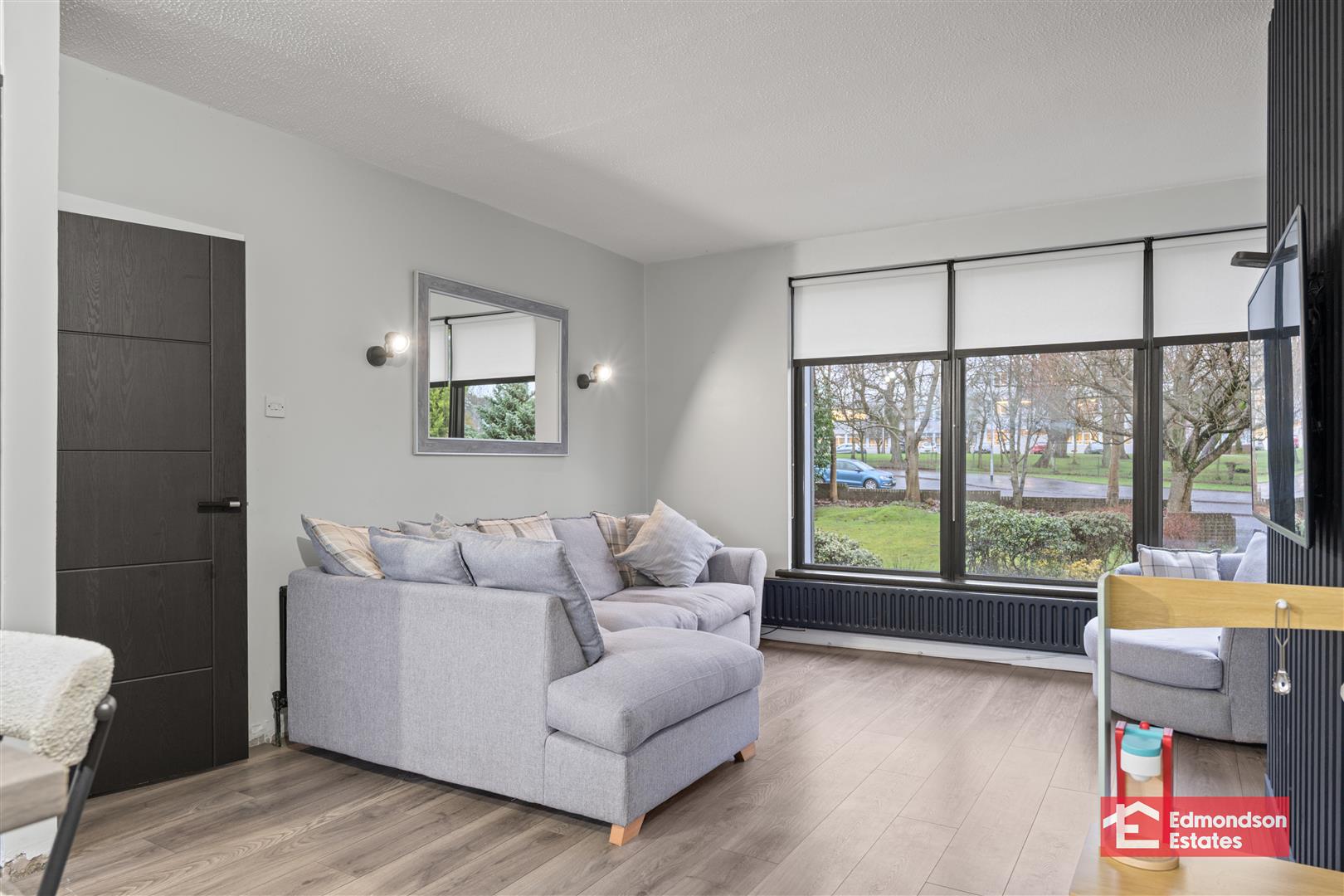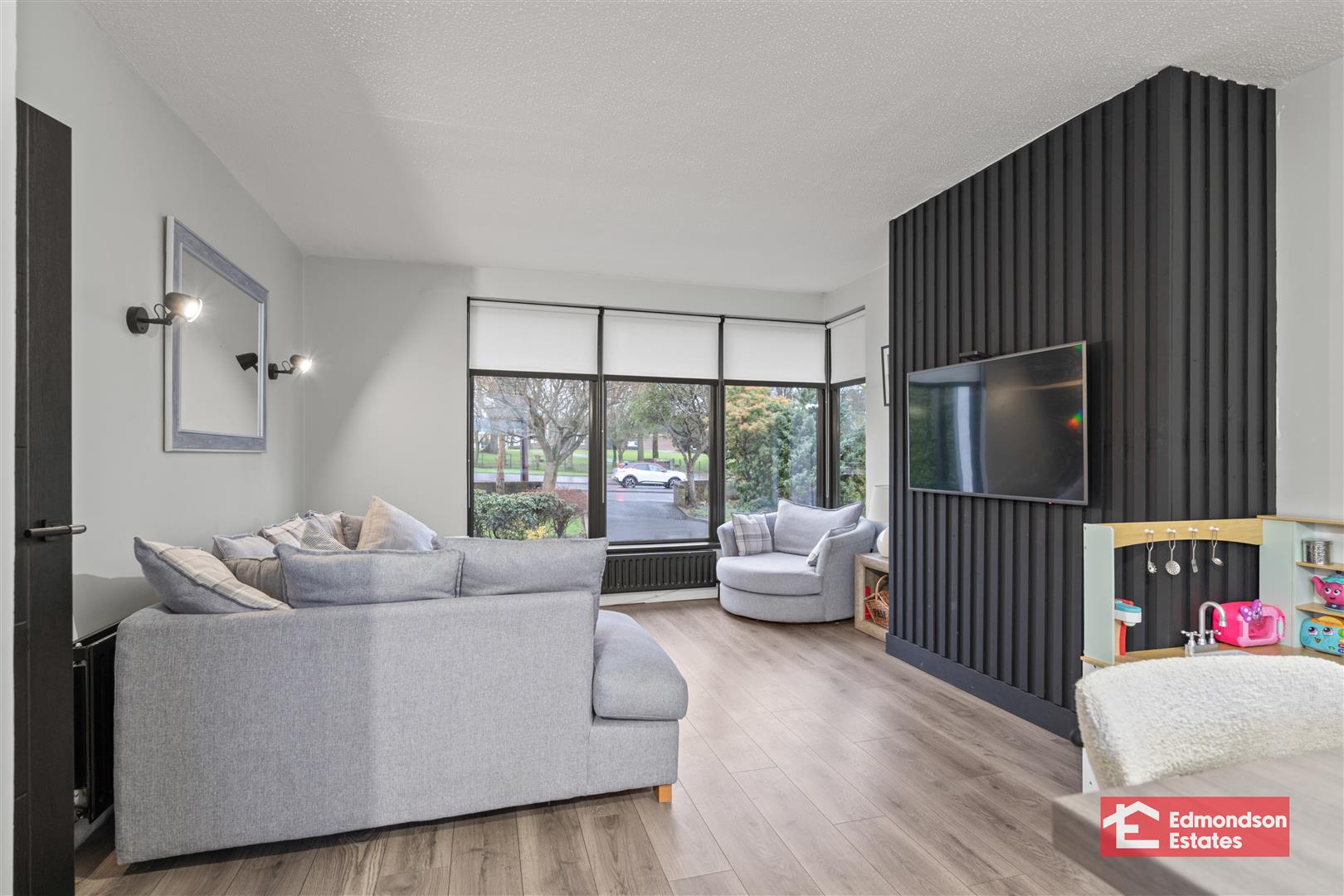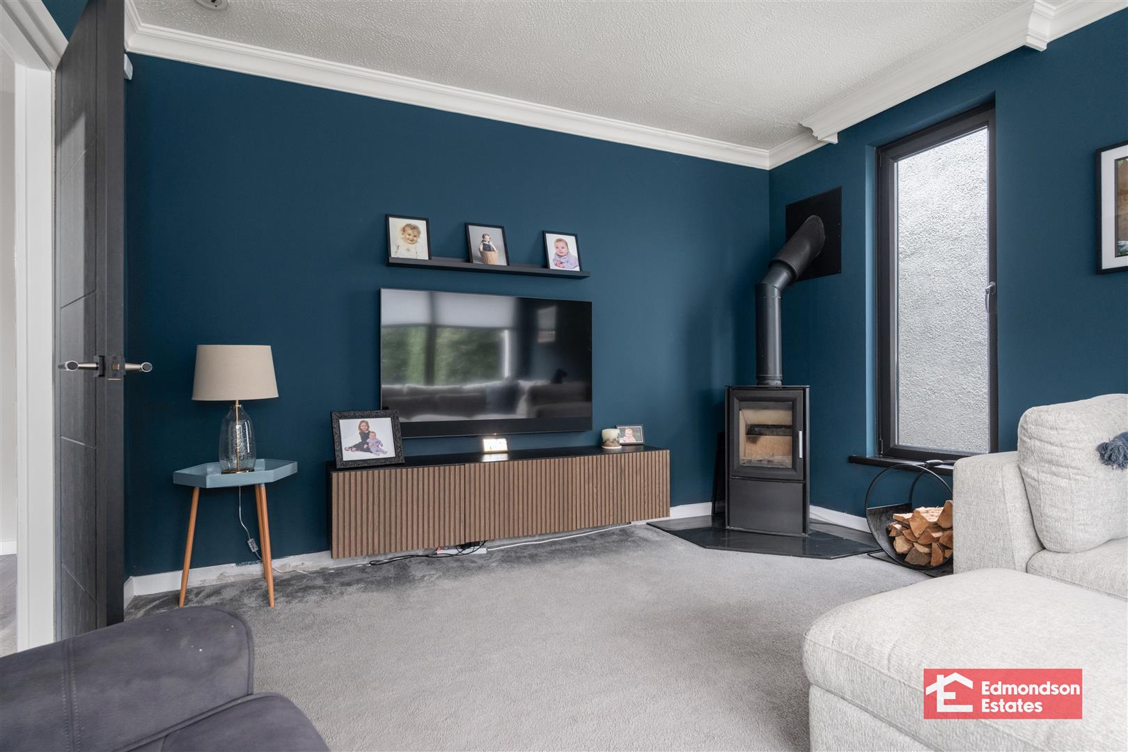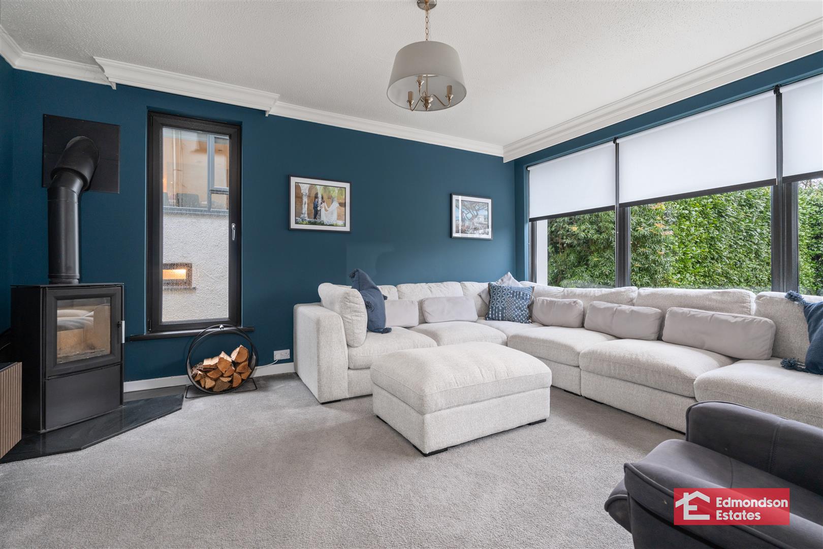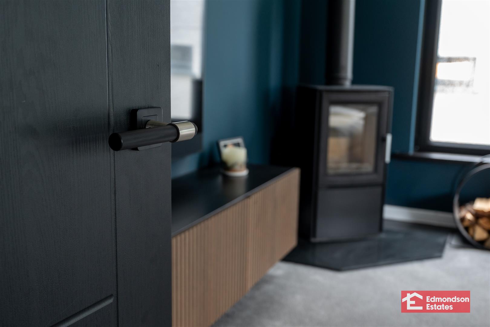 Dual aspect windows with picture window to front elevation. Focal point wood burning stove on granite hearth.