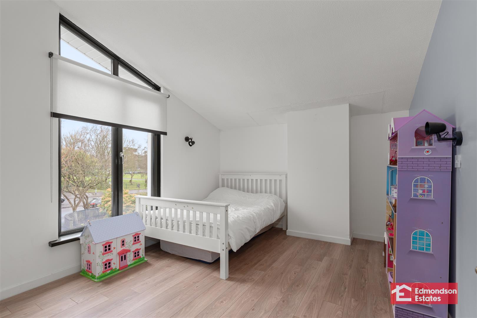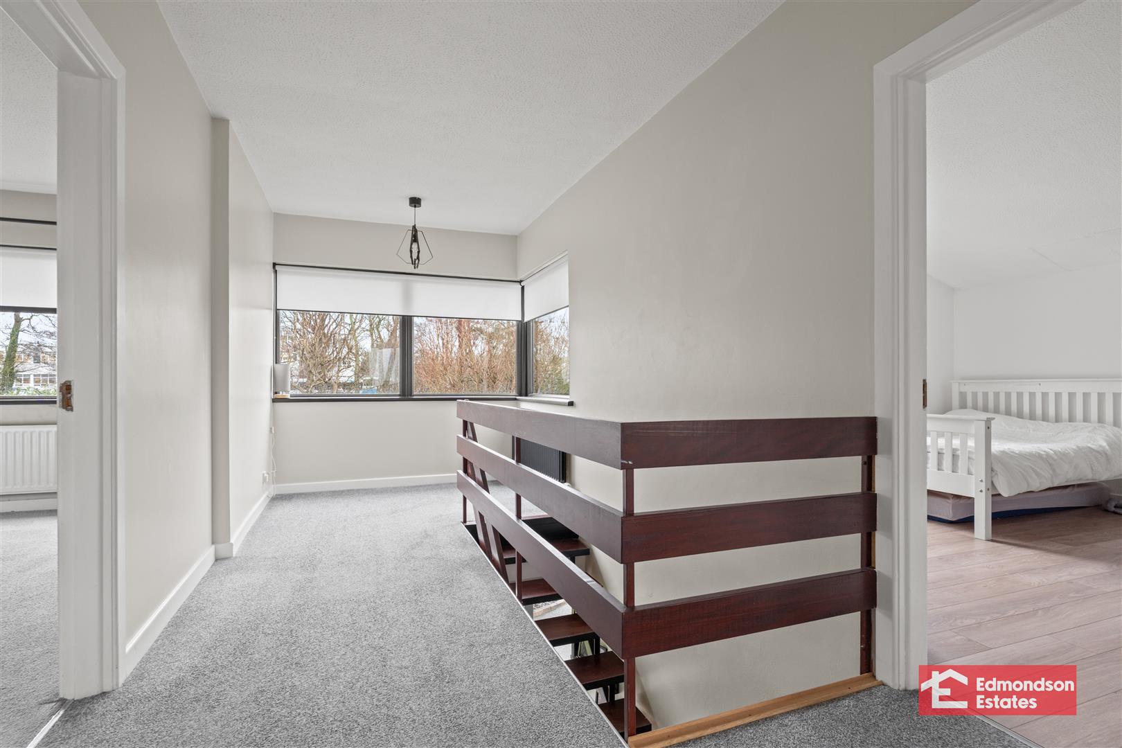 Wood laminate floor covering. Access to large roof space area via internal door.