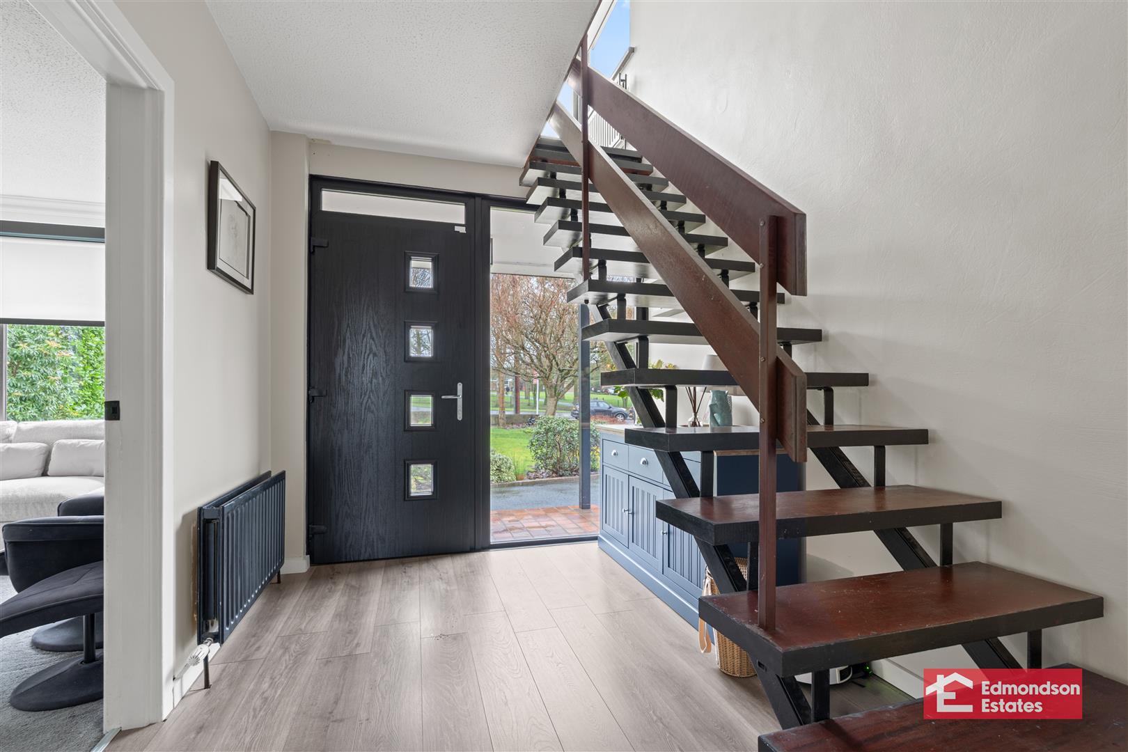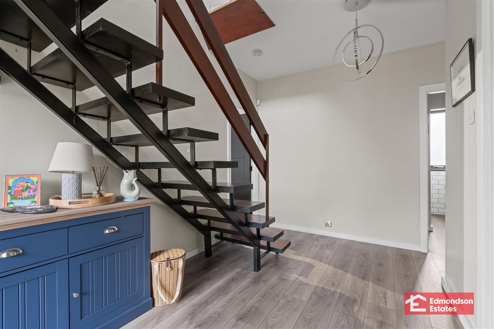 PVC double glazed composite front door with side screen. Open tread stairwell to first floor. Wood laminate floor covering.