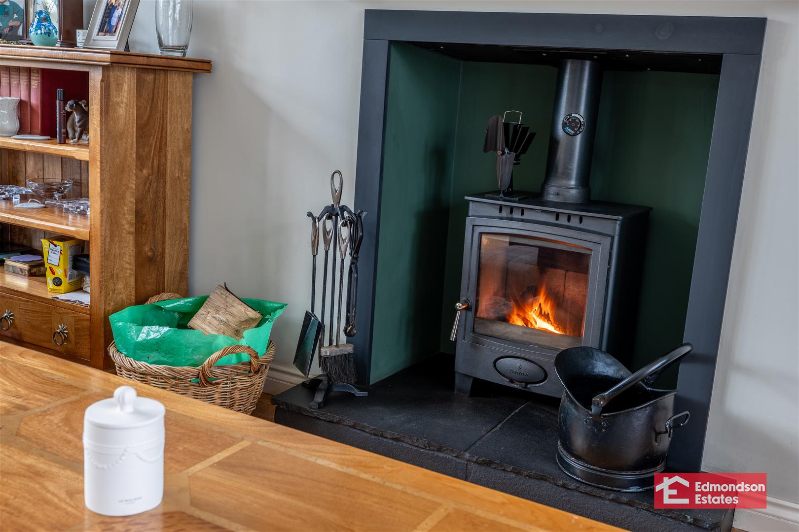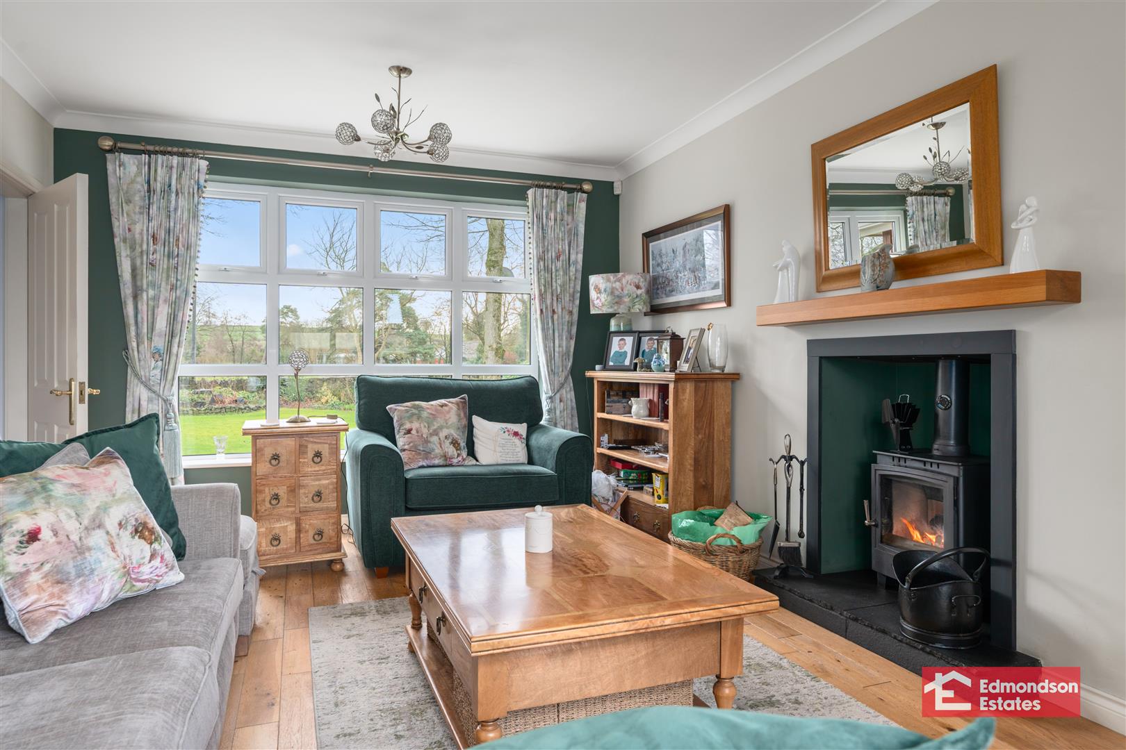 Multi fuel stove. Solid oak flooring. Ceiling coving.