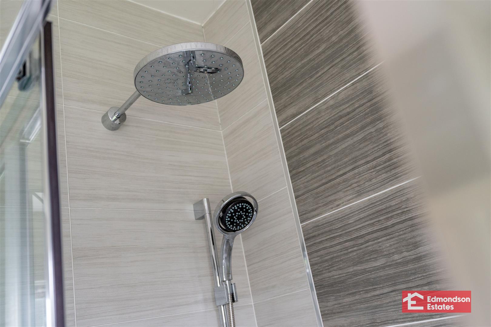 Refitted suite with Large walk in shower with rainhead. Bath. LFWC and WHB. Fully tiled.