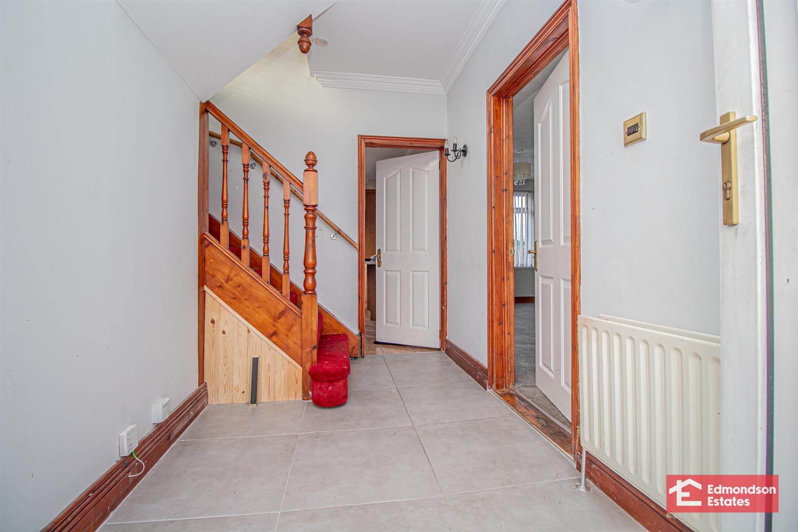 PVC double glazed front door with side screens. Stairwell to first floor. Tiled floor.