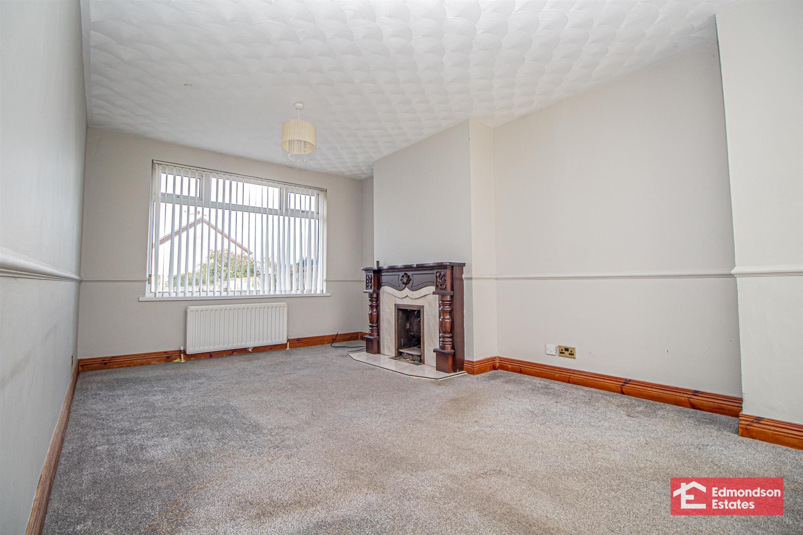 widest points. Dual aspect windows. Focal point open fire with timber surround on tiled hearth.