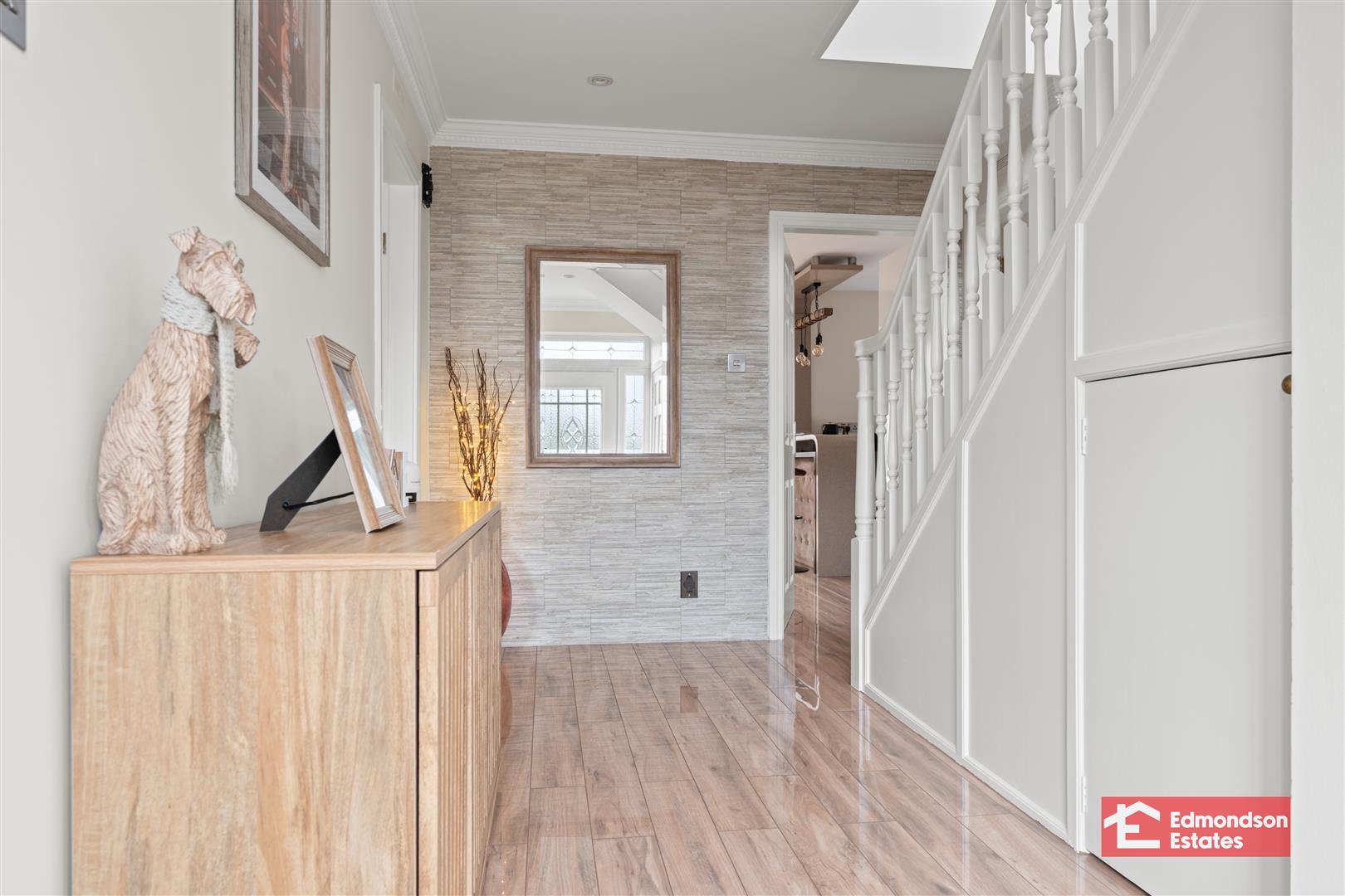 PVC double glazed front door with side screens. Access to under stair store. Stairwell to first floor. Tiled floor.