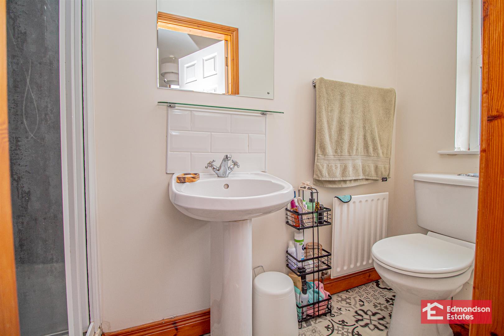 Modern fitted three piece suite comprising shower cubicle with mains shower over, wash hand basin and WC. Fully panelled walls to shower.