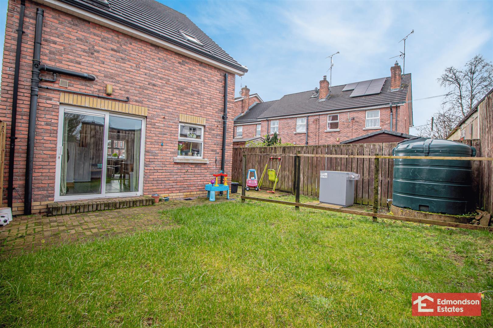 Enclosed rear garden in lawn with patio area. Secure side bin access.